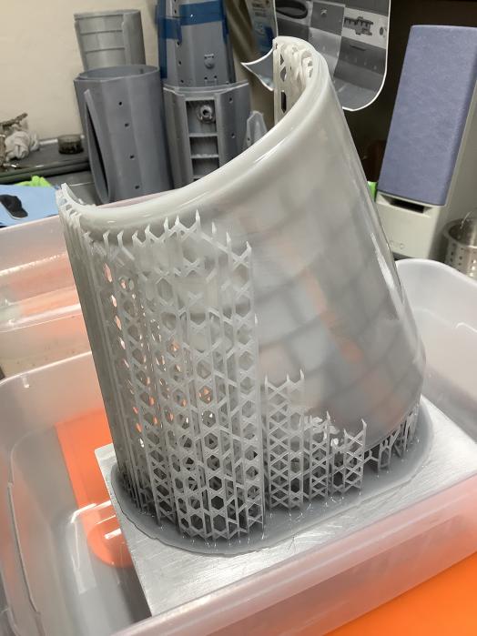 First, I model in a ribbed support structure in all of the hull sections. This not only gives the model more rigidity while printing but once cured, make the parts stronger.