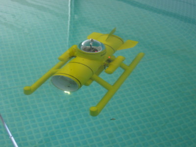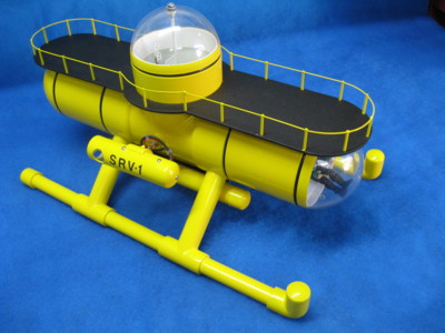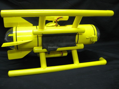 About a year ago, I was waiting on parts for one of my other subs. So I got an idea to build a home made sub. This is what I came up with. Here are a few things I put in it. I started out with some 4" PVC and went to work. I put two tilting power pods on it with 385 motor in each one. It has two viper 10 ESC in it and two 11.1 Lipo battires and a dual ESC Mixer. It has running lights, a strob light and a LED flood light. I put a RCABS in it as a back up with a dual E switch with a clippard and a air pump. I can dynamic dive it with no forward motion and with the power steering , it will turn on a dime. Well here are some pictures of it. Hope you like them Check out my video of the sub on youtube ( RC Sub in a box ) Here are some updated pictures of my creation. LOOK no tail fins