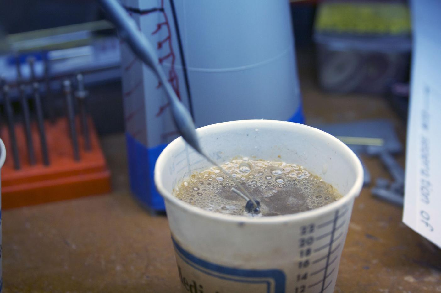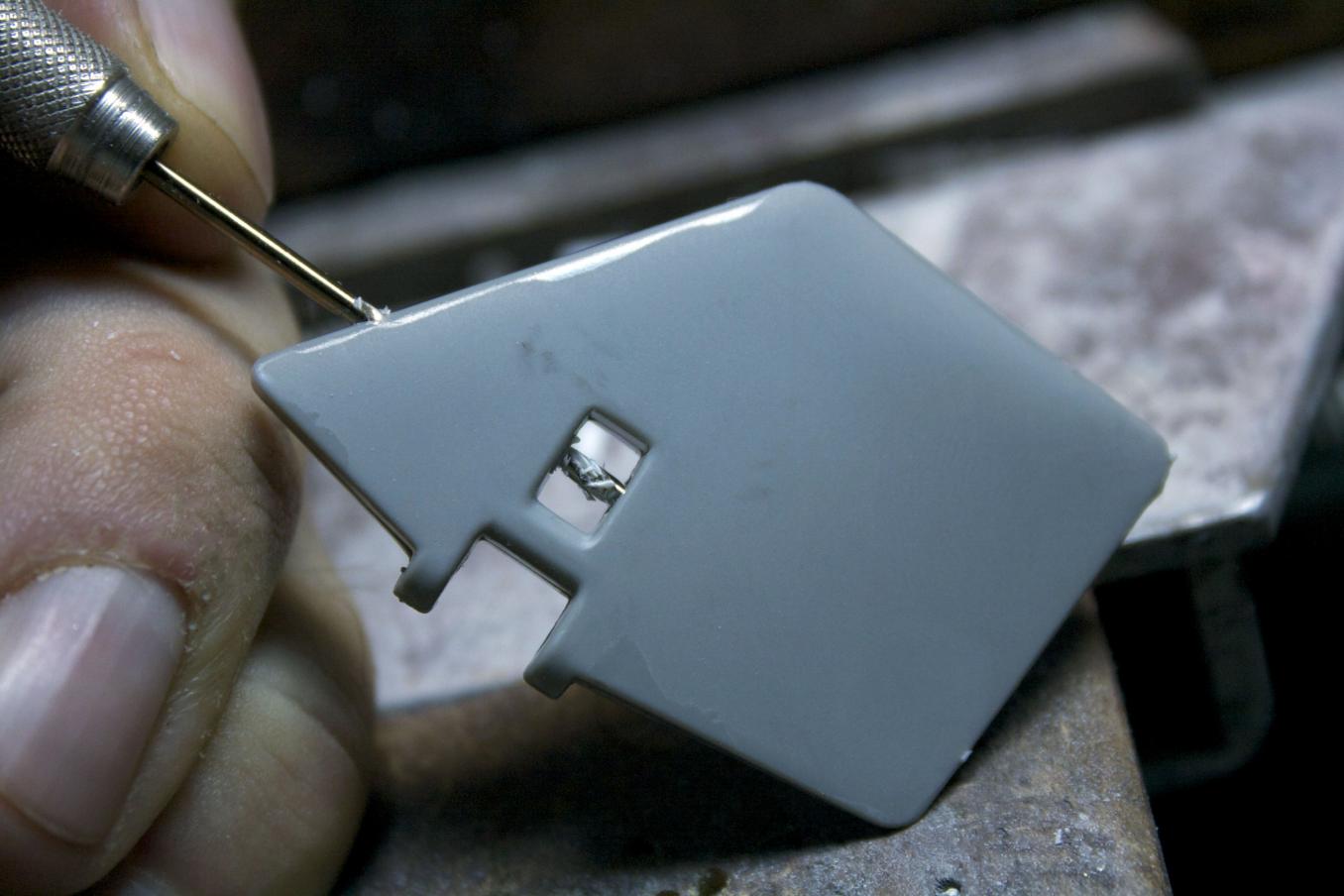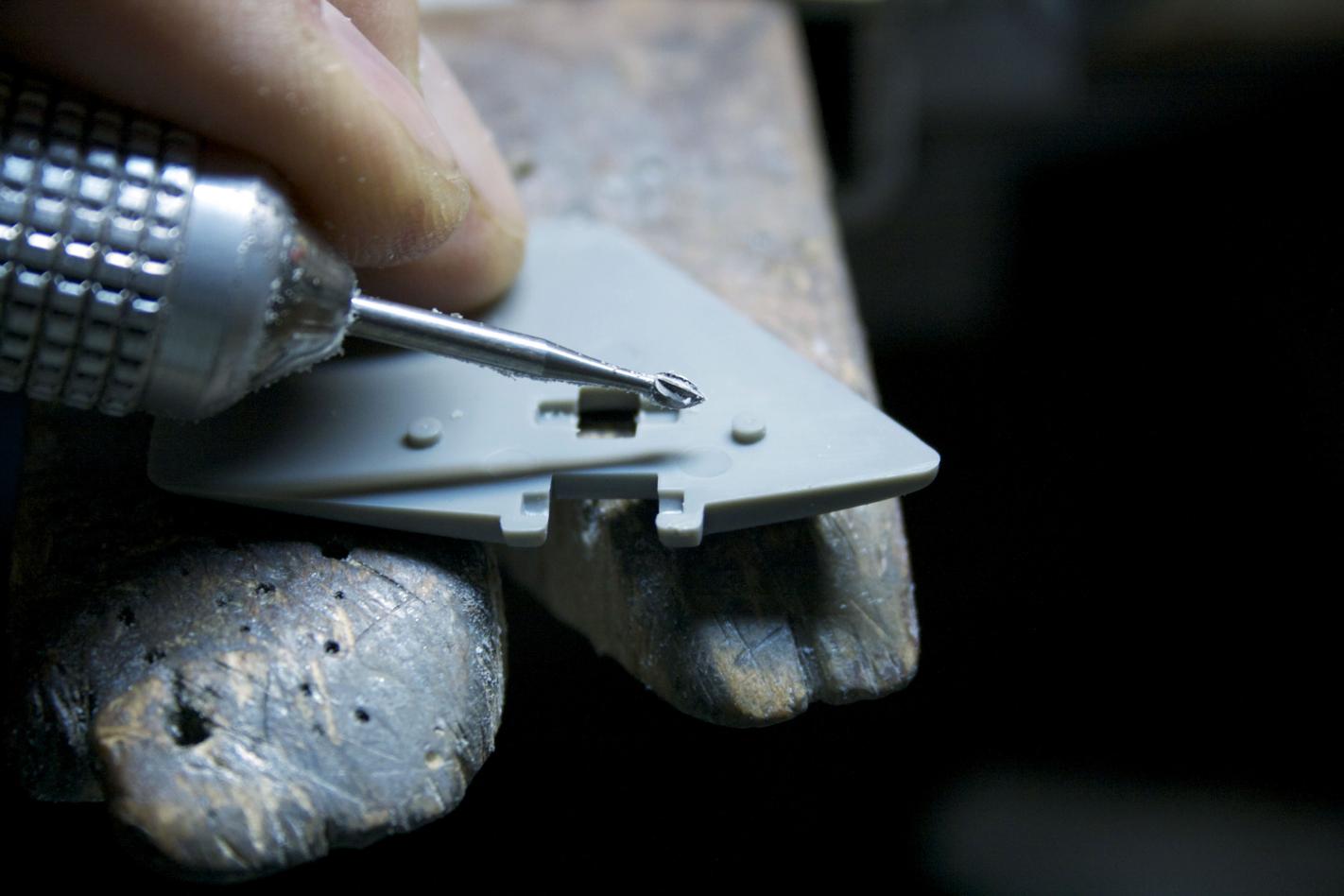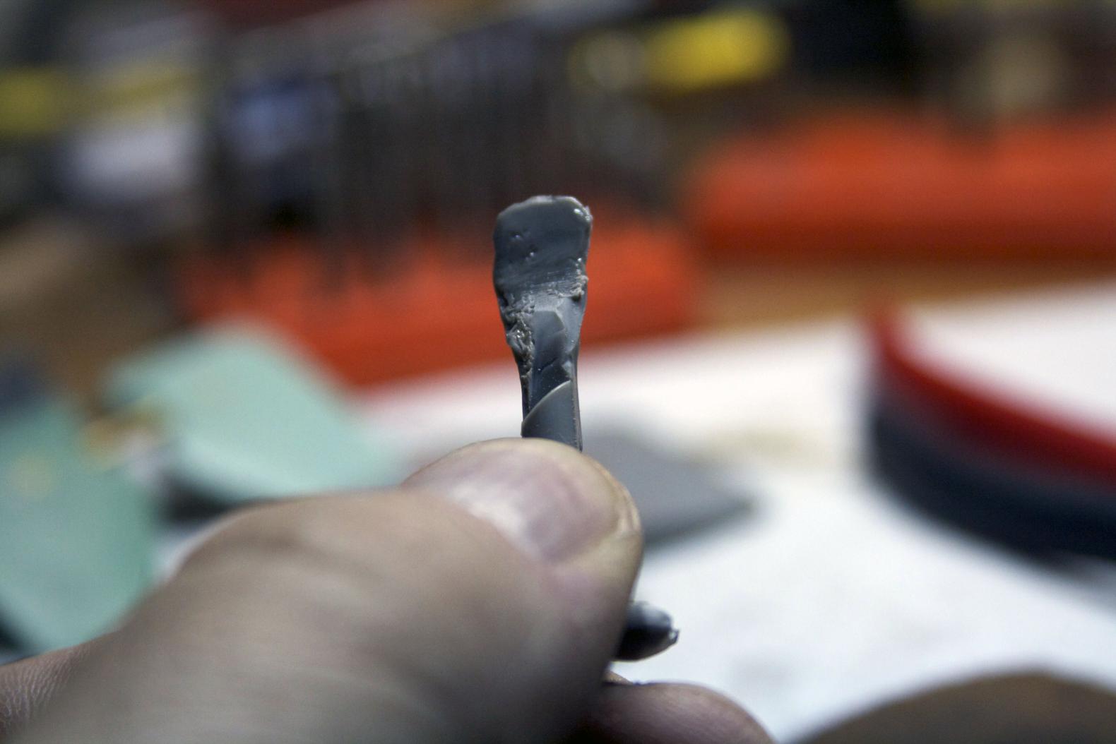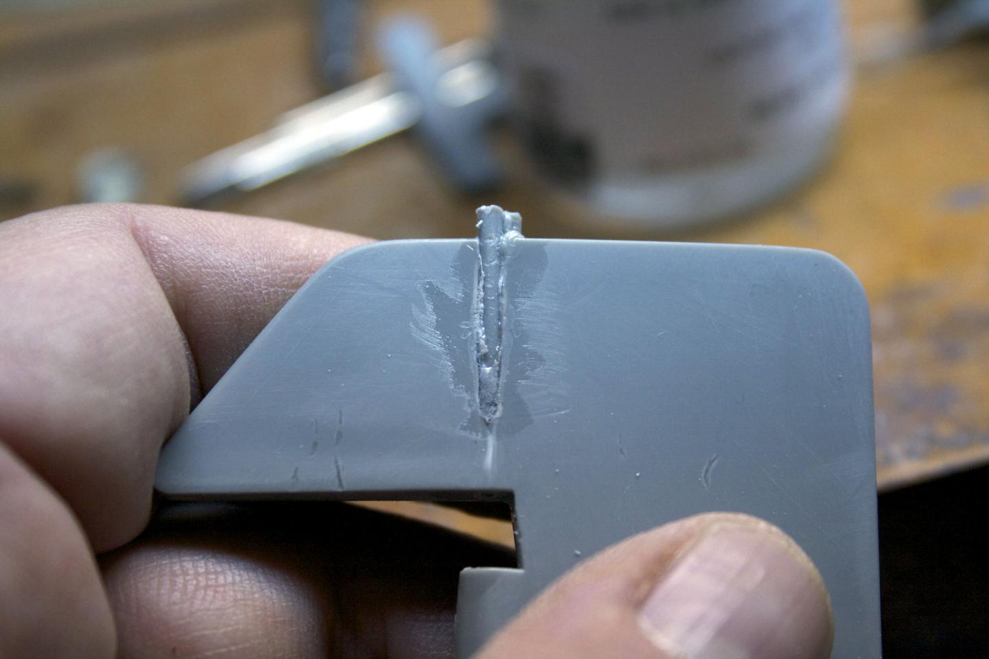 So.... break out the sprue. I melted the sprue and quickly flattened it. Then sanded and ground it down to fit. Applied a generous amount of cohesive to the sprue and surrounding areas.