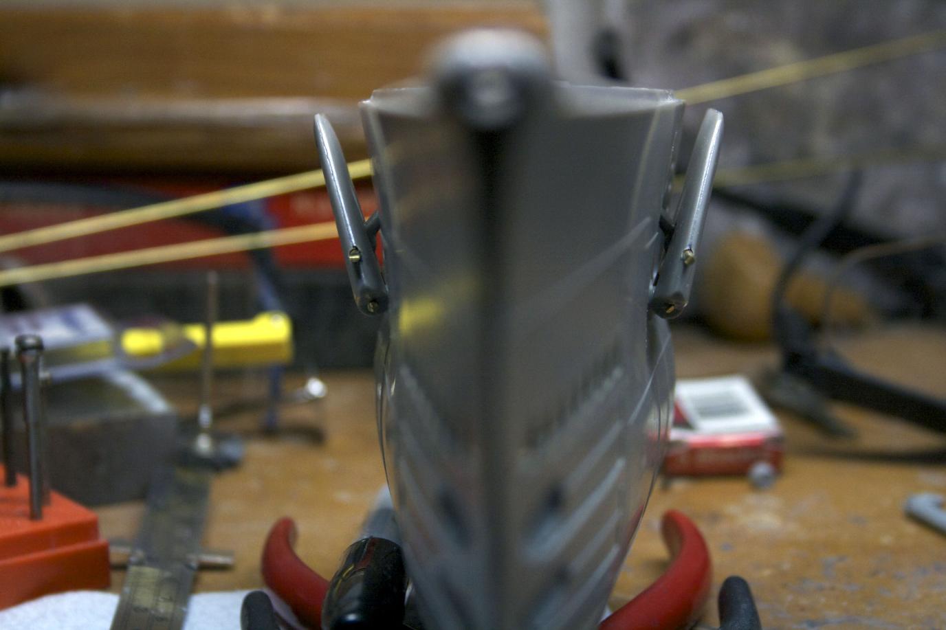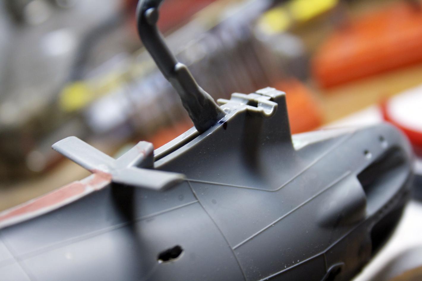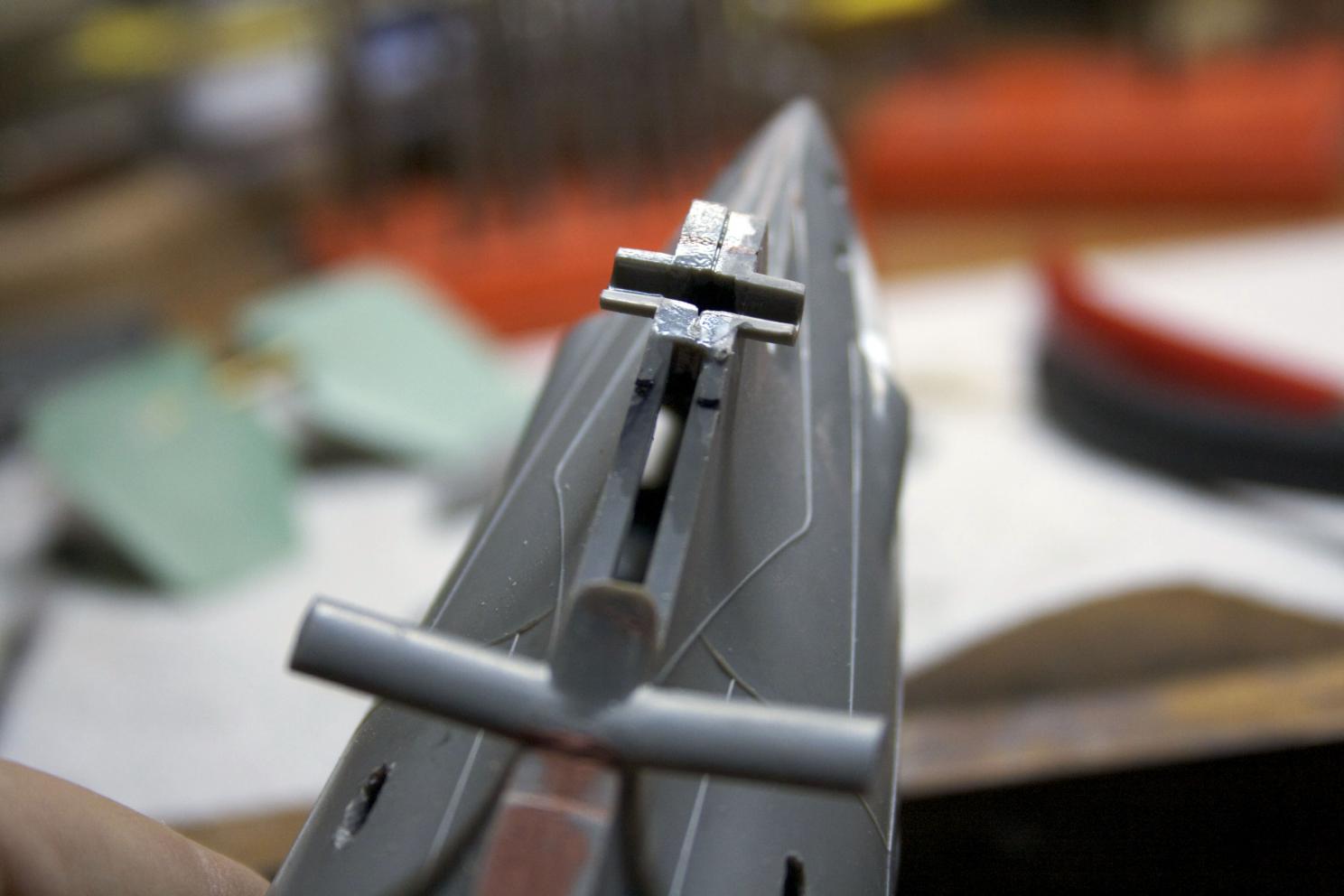 Split the hull like I showed you, damit! Loved the streached sprue trick. Nice.