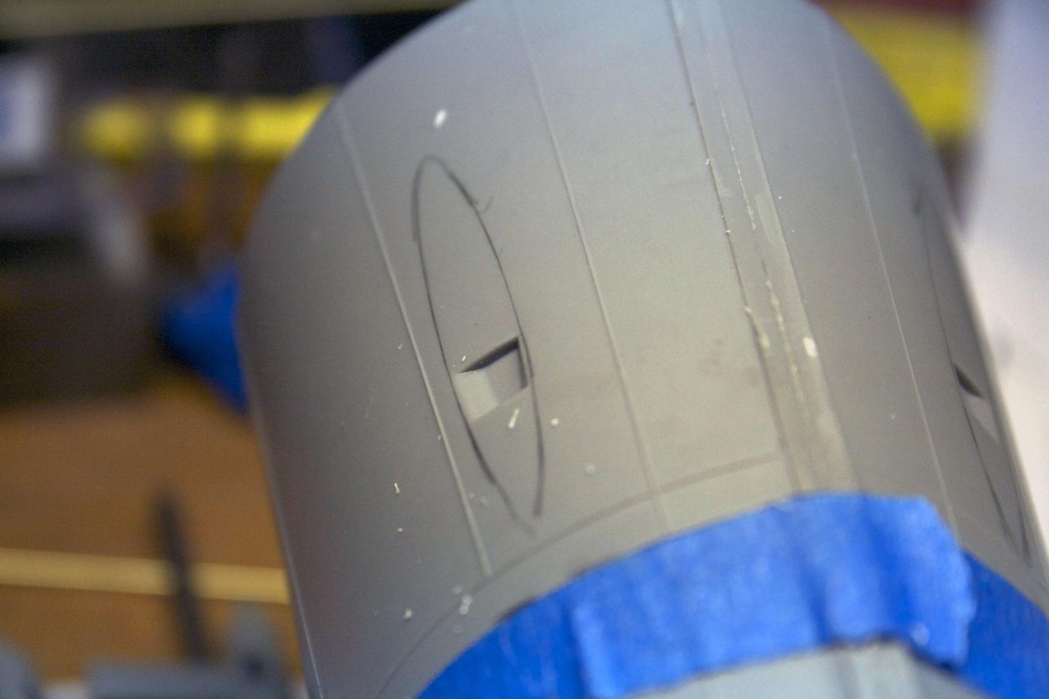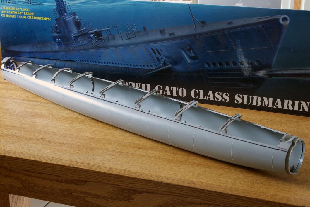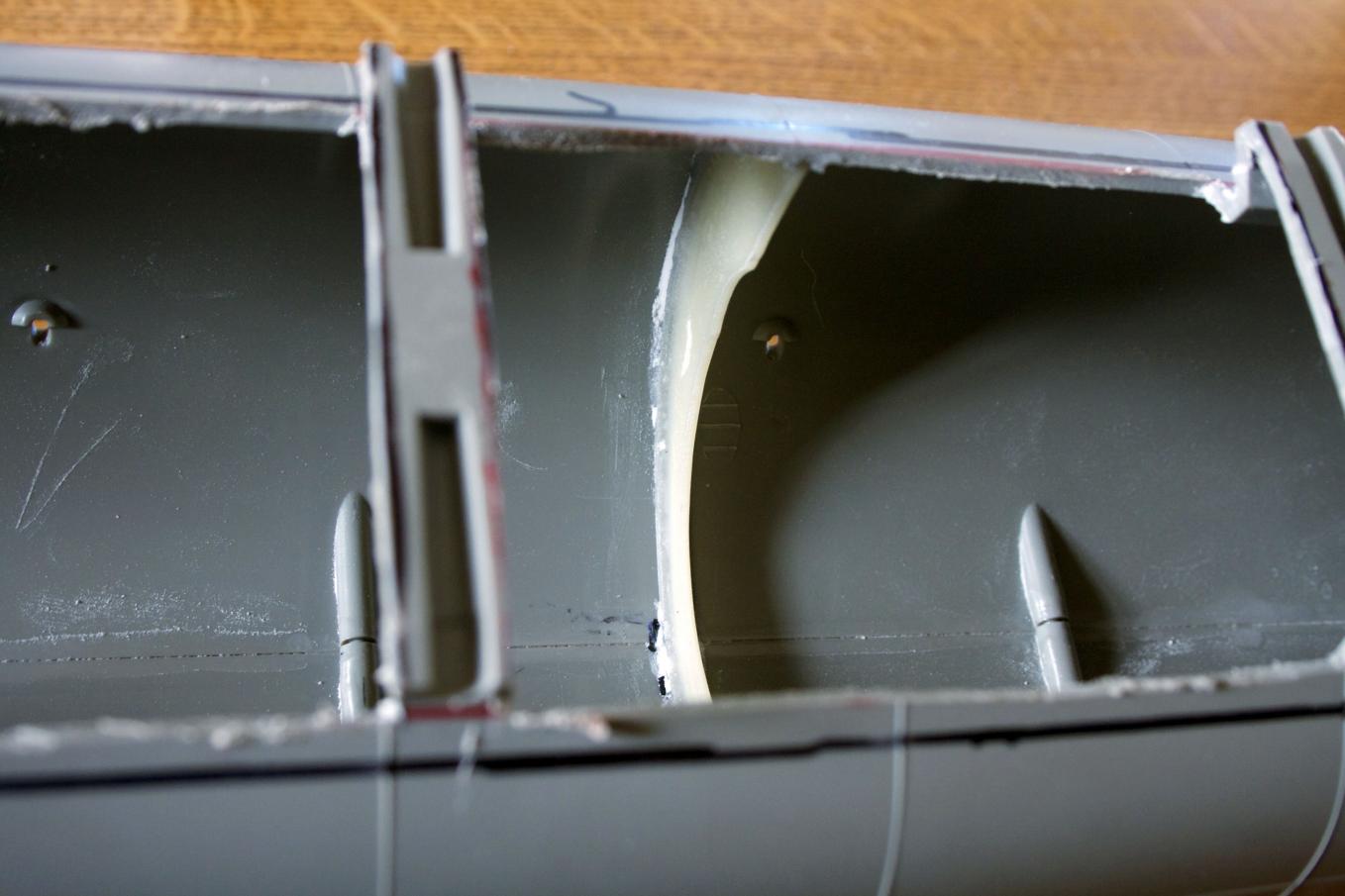 Split the hull like I showed you, damit! Loved the streached sprue trick. Nice.