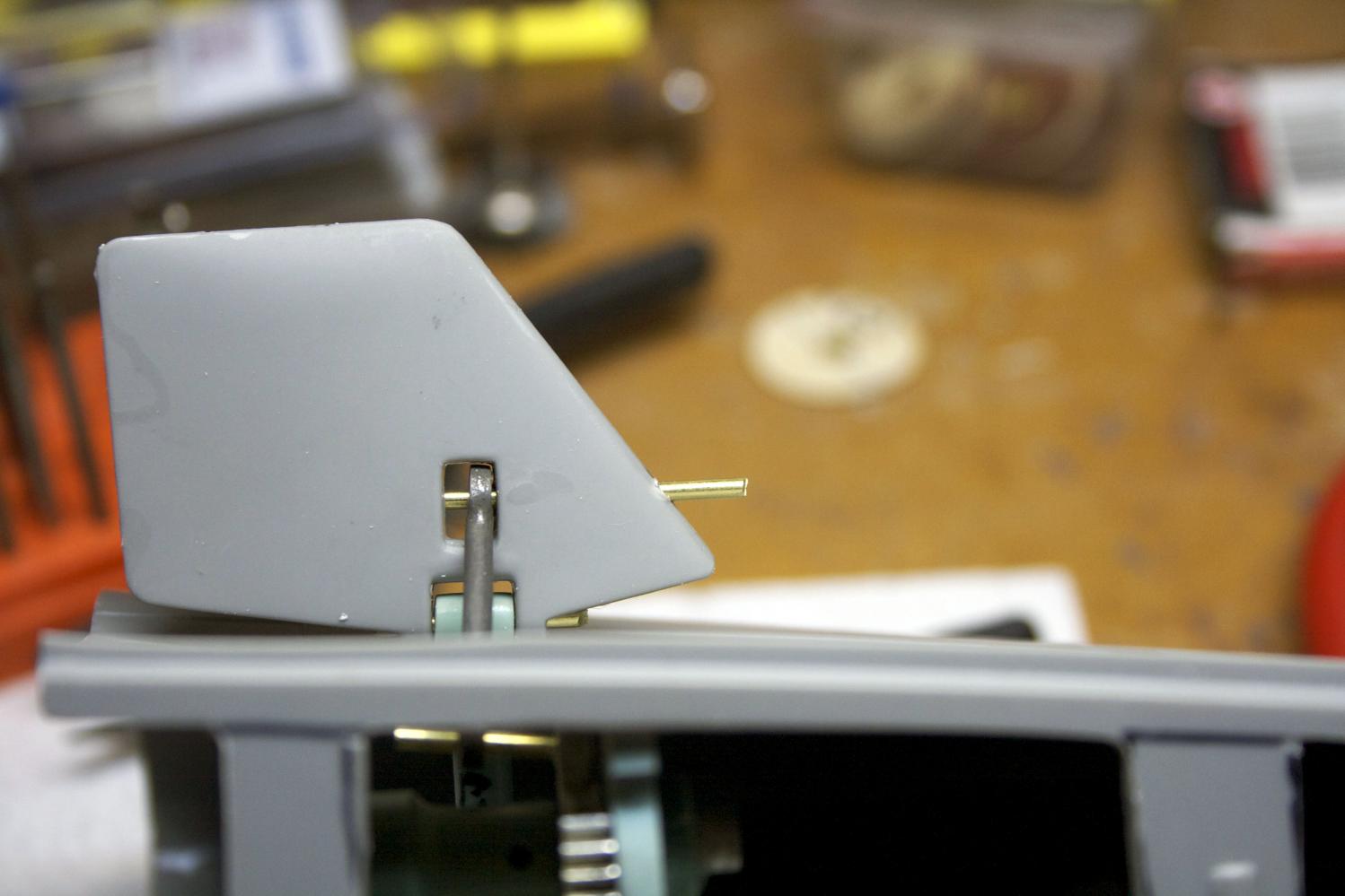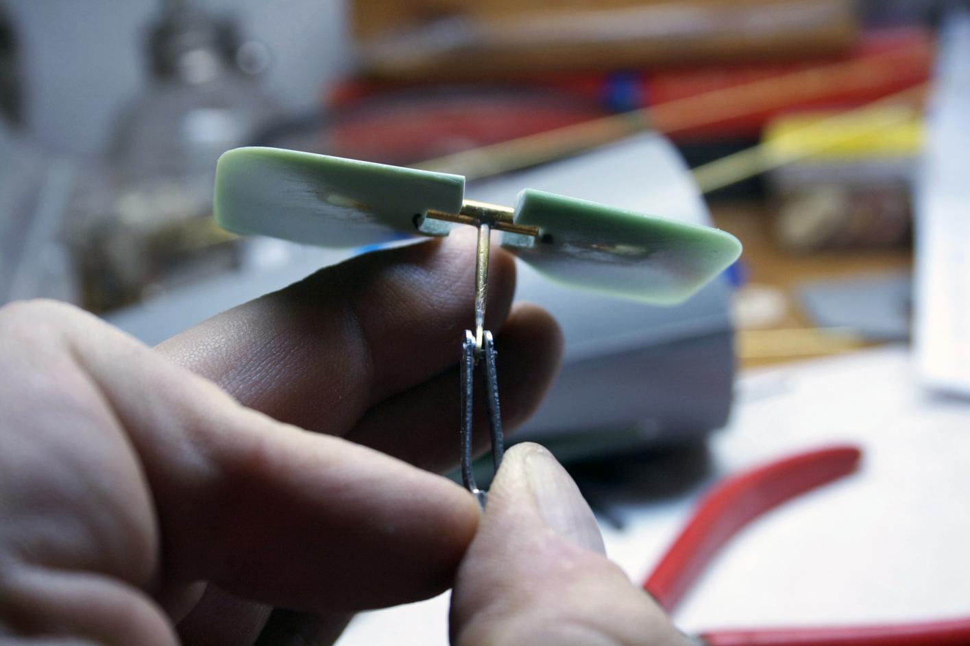 When I cut the sprue off, I left a small amount above the skag. Had I been smarter, I would have left a larger portion on because it helps align and support the skag/propellor support (much like a biscuit cut or plate cut in wood working) and give me more to screw into. Oh well next time. Then I drilled .063” hole and threaded a stainless steel 2-56 3/8” screw in. It WAS just that easy. Thank you David for sharing that tip! In retrospect next time I would drill a 1/16” then follow that with .063” 3/4th the way through. Leaving the last 1/4 the more tighter grip on the threads. It may not matter, just a thought for next time.