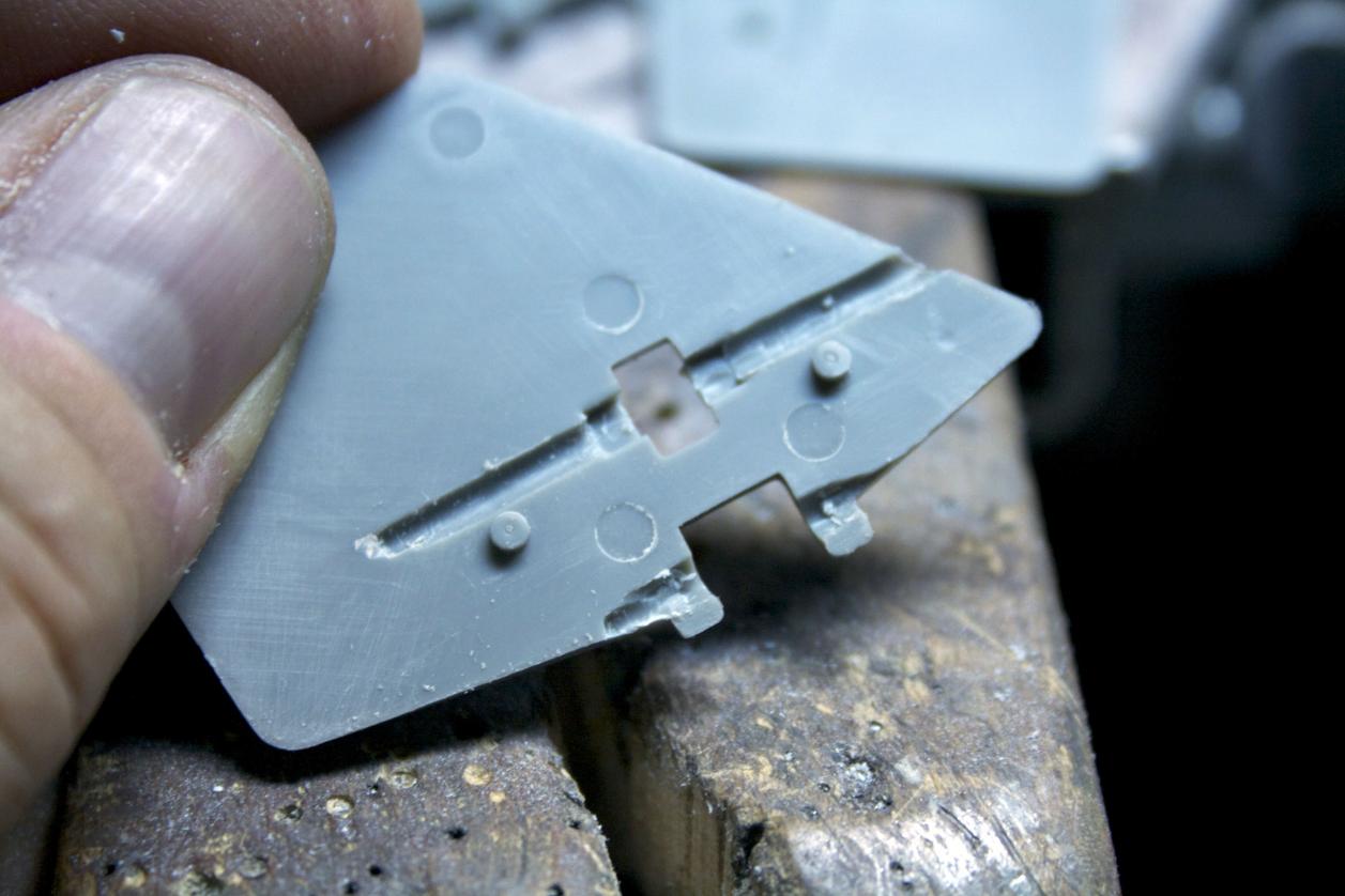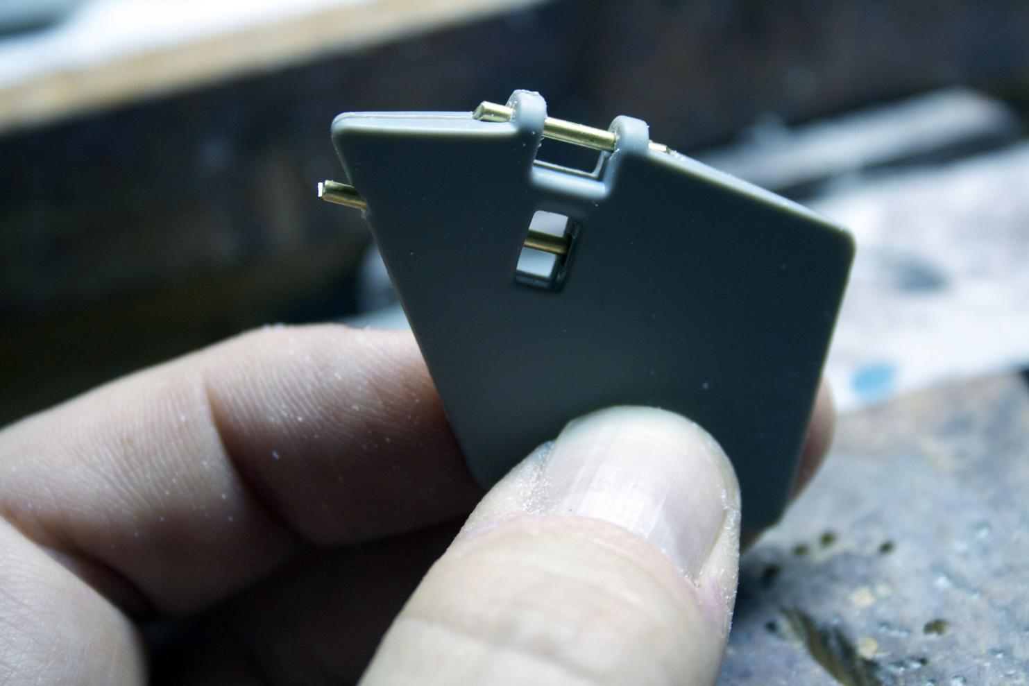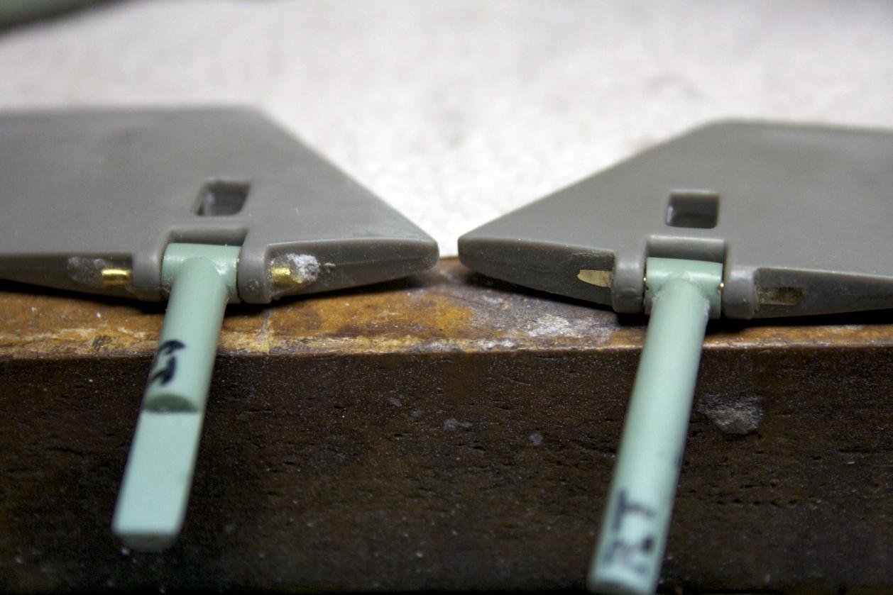 In an effort not to repeat installing them wrong again, I marked them left top and right top (should be port and starboard, I know...) Also another benefit the plane hugs the side of the hull better, before the forward edge seemed to stick out a little (thats because it did - amazing what a few degrees can do).