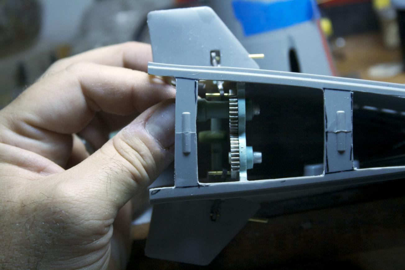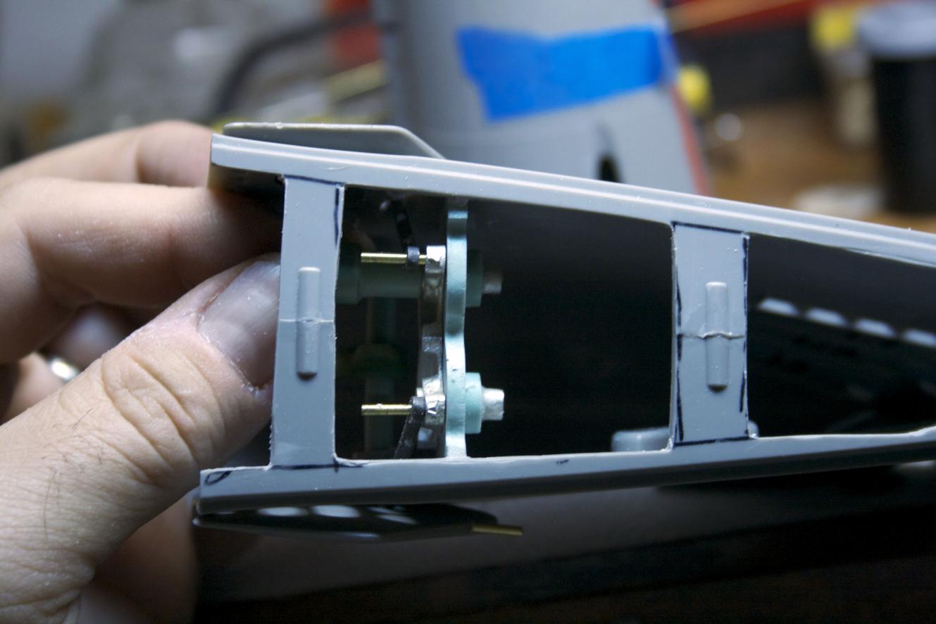 Now the plane has room to move and my resistance disappeared, so the movement is smooth retracting and deploying. My range of up or down bow planes increased because the planes were not hitting the hull.