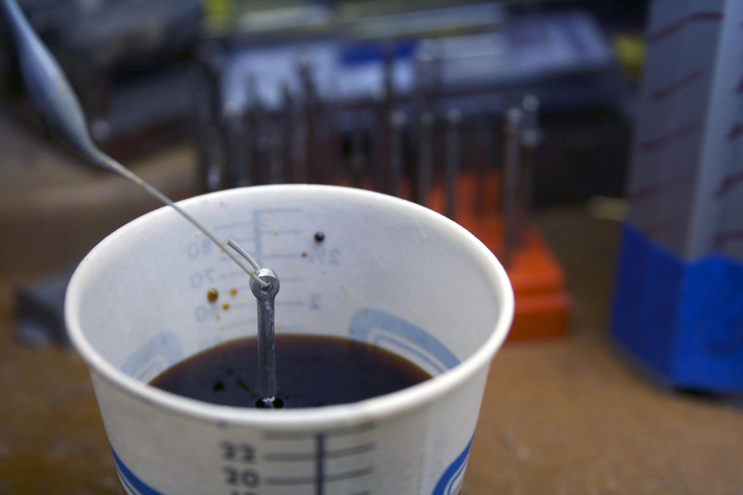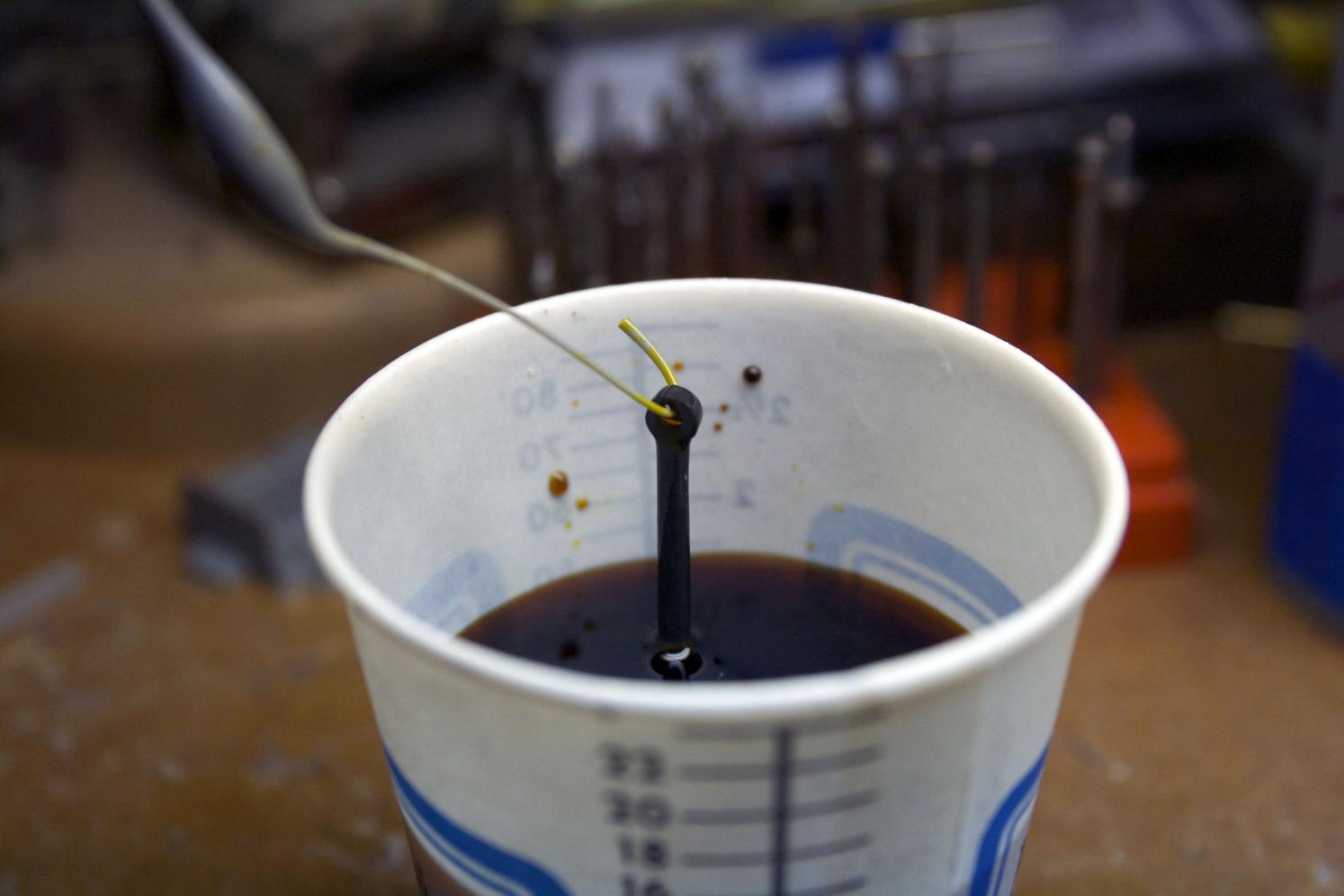 I tried to use CA and baking powder to fix the melted shaft, but was not pleased with the results. So I stretched some sprues (Glad I saved some) and welded them into the holes with liquid cohesive.