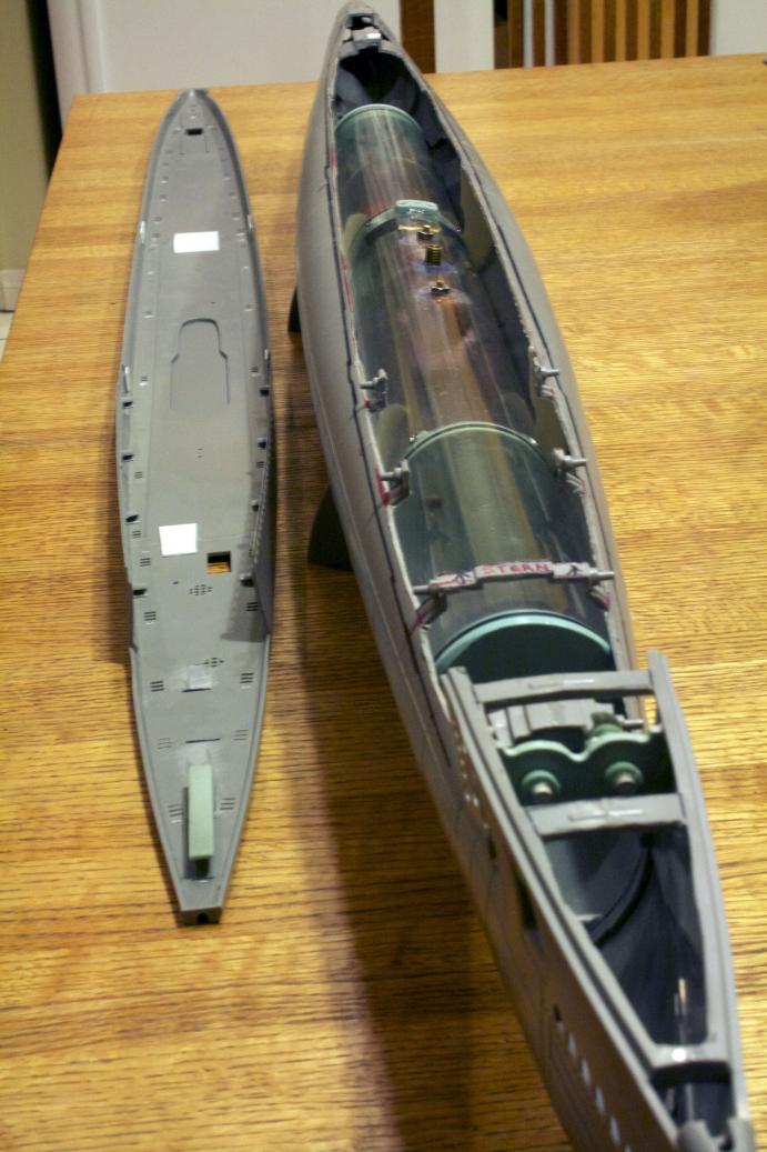 Just a quick note. I have been doing some cleanup and weighed the pieces I took out of the top of the hull, bow and stern. It came out to be 163 g = 5.74965 oz (at minimum) and I still have cross members to cut out.If you can cut, drill, saw, hit things and swear a lot, you're well on the way to building a working model sub.Comment