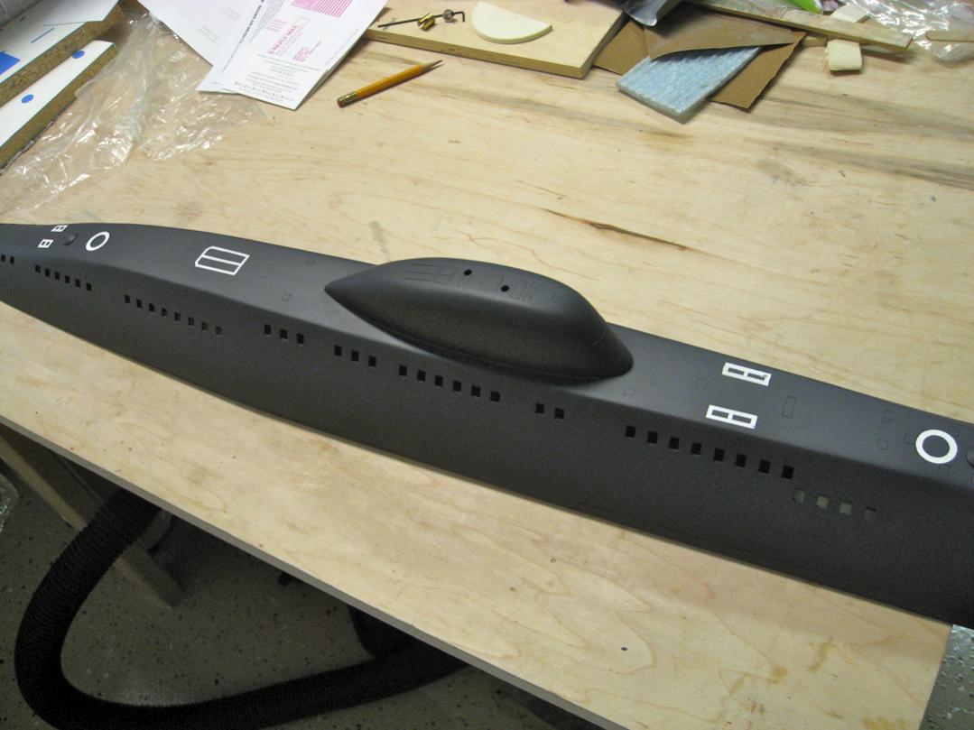 Now, on to painting. I experimented with blue tape to mask areas that would end up white after painting the hull black or dark grey.