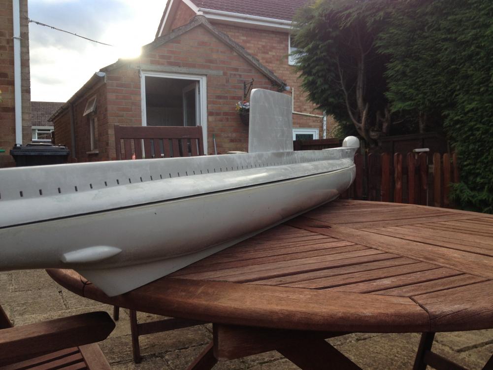 I started the other week couldn't let it just sit there, drilled more flood holes, sanded off the join line between the 2 parts filled and sanded smooth nearly ready to install A frame and prop shafts. Hope won't take me to long to get it in the water will worry about detailing like raising periscopes and opening torpedoes after just wanted to get a sub in the water.
