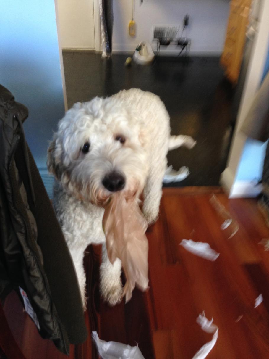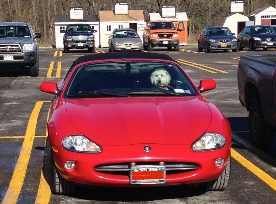 Barkley can drive too! Here he is parking the car for me, here he's helping clean out my pockets of junk!