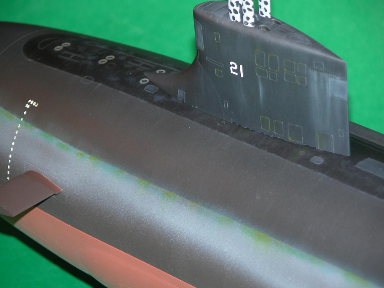 The Trumpeter kit reproduces the SSN21 according to the decals, but as there are many Seawolfs sailing out there, I decided to build it as the SSN22 USS Connecticut, using spare adhesive decals for the numerals in the sail.