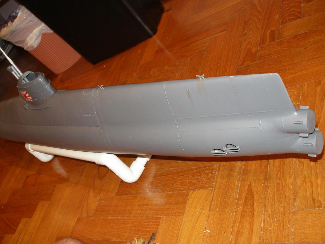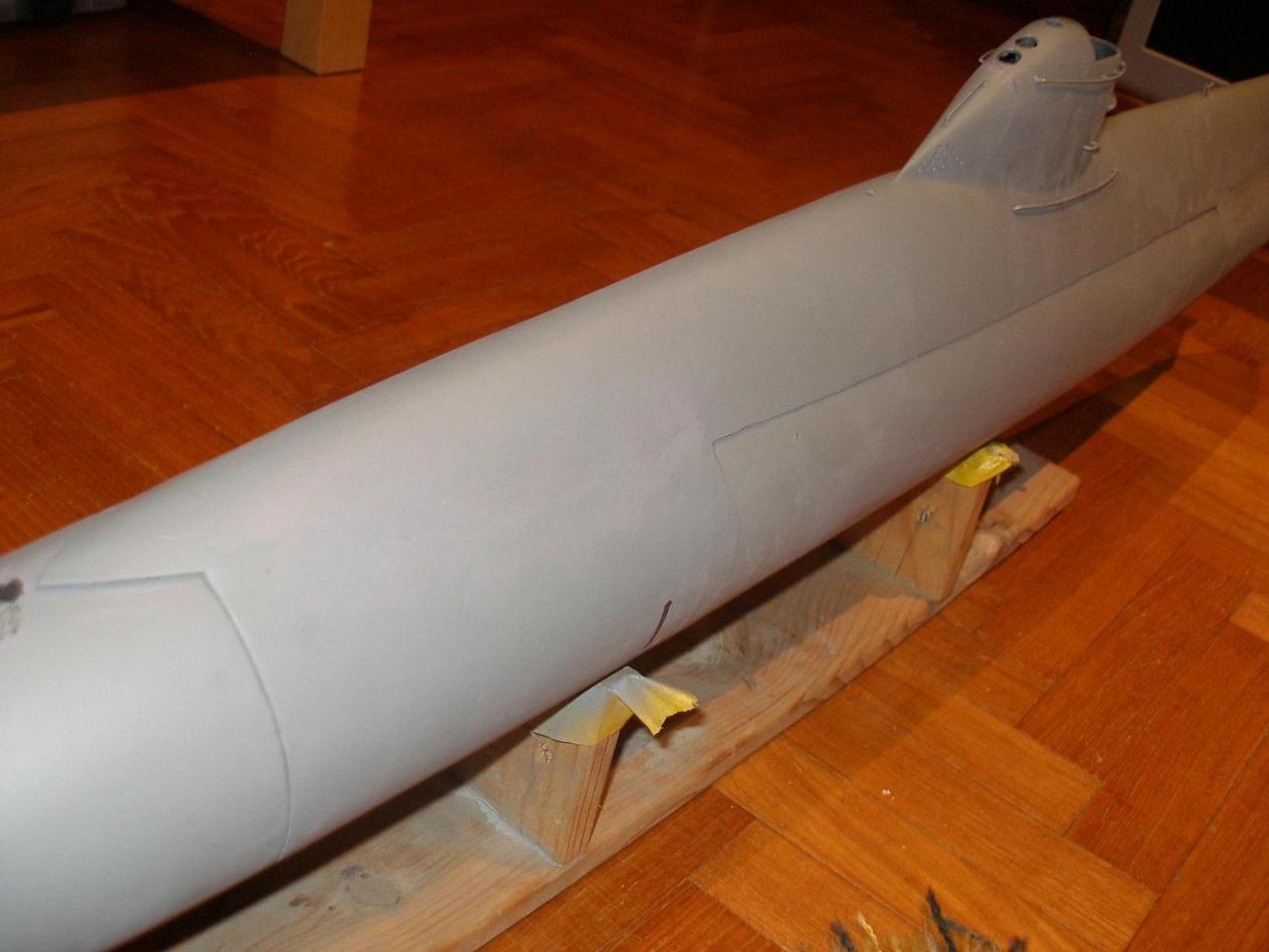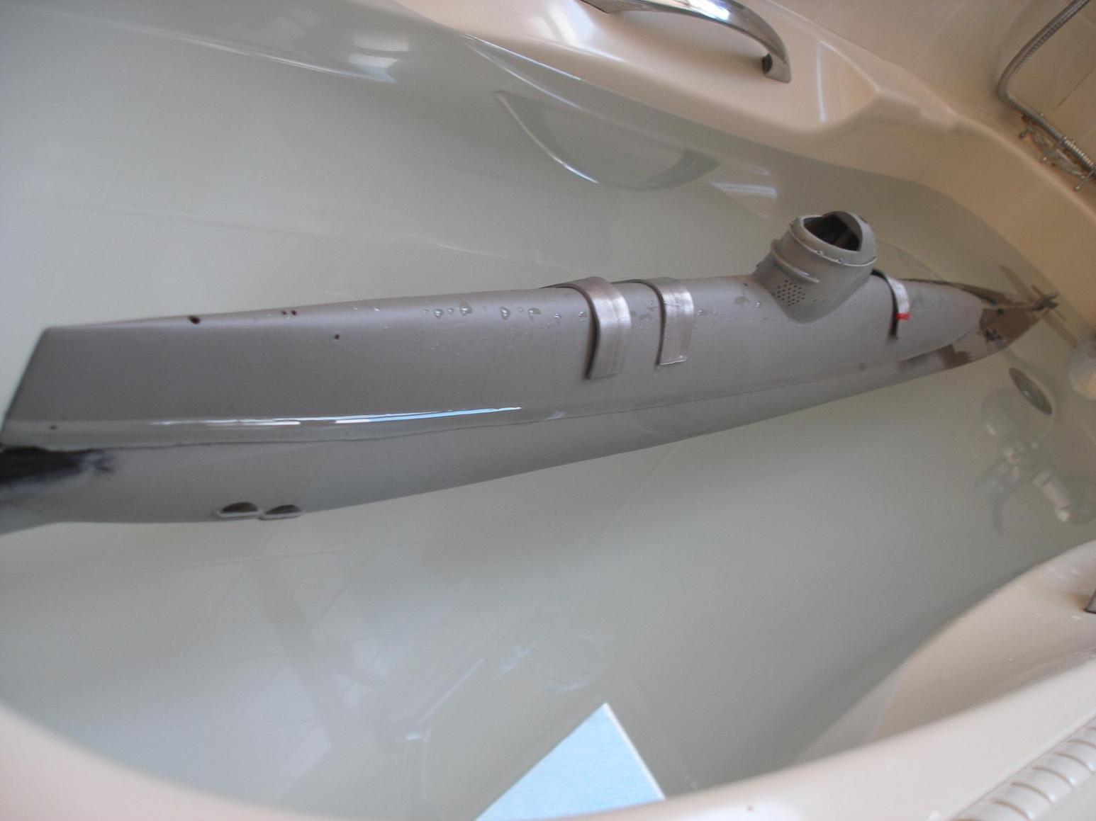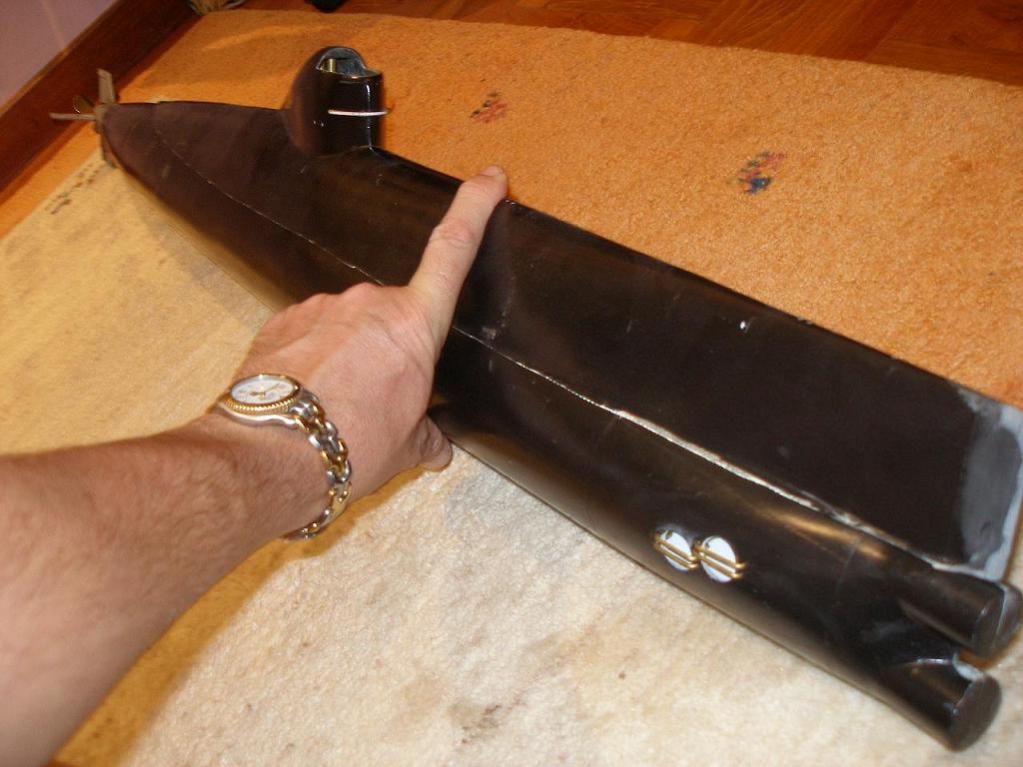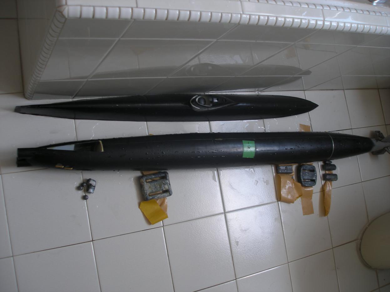 The base kit had a main hull section, stern section, an upper hull, some moldings for the torpedo heads and part of one of the scopes, and lastly a clear vac formed cowling. The other main working parts which needed to be sourced is a 500ml piston tank by Gerhard Gasch with a proportional control board by Markus Rieger. There were some simple plans, but other than that it was up to me to make it up. No appendages!!!
