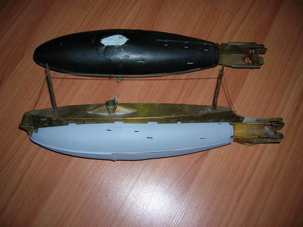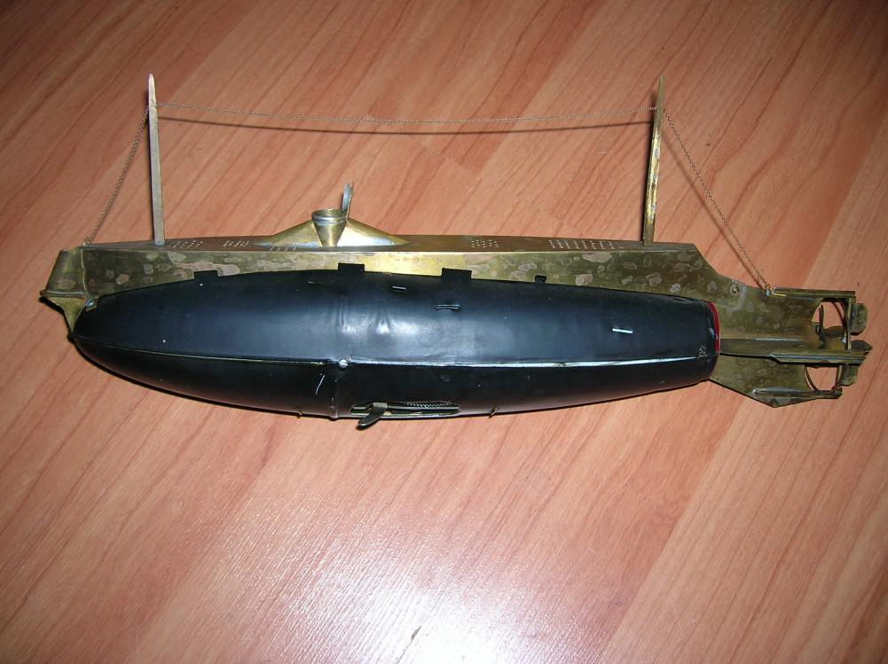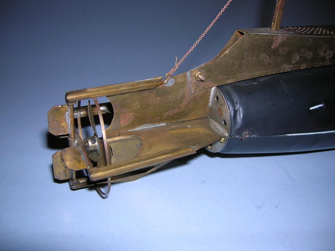 I've always wanted to RC my little 16in., all metal Holland and when I saw the 1.25" WTC, it looks like it might be possible now...I'm a bit worried that the metal hull might act like a 'Faraday Cage', perhaps run the receiver wire outside? Anyway, the model performs very well with just the clockwork motor and will dive and surface repeatedly or one long dive/surface or just 'surface run', depending on the dive plane setting. I used the drawing by Jim Christley that's on the cover of SCR, issue #16. The model incorporates some Chinese junk toys and a Marx windup mechanism, the rest is brass and solder, lots of solder....I have a couple on the work bench now that are half done, so I'd like to try and convert one to RC. Has a time limit been established for the contest yet?