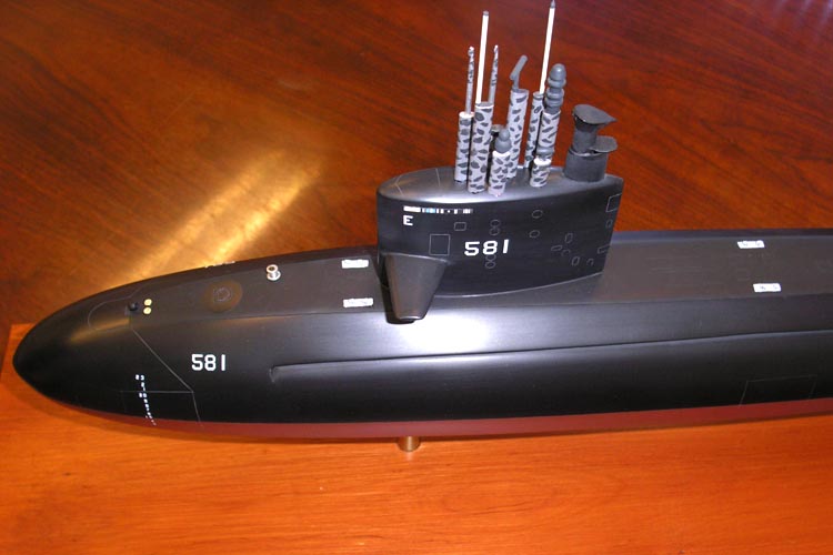 The real BLUEBACK is on permanent display at the Oregon Museum of Science and Industry in Portland. I discovered her in '97 while on business there and have visited her several times including while she was on drydock for overhaul in '98. I've photographed her inside and outside, topside and underside. Even managed to get a set of drawings for building the model in 1/96 scale. It took about 2 years to complete and she was displayed at the Maritime Museum in Vallejo, California during the submarine centennial.