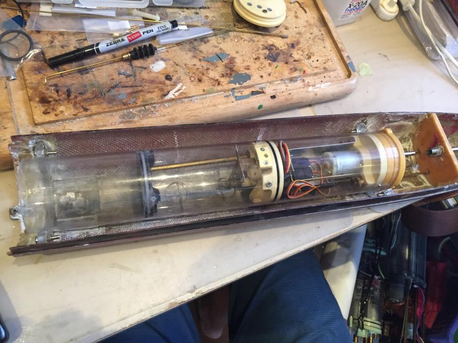You can swap out that servo without need of pulling the after ballast bulkhead. You'll need a very long hemostat. remove the two wheel-collars on the wet side of the pushrod; remove the dry-side servo bracket; grasp the servo with the hemostat and yank the entire unit out; replace.Slow work over weekend , but got the wtc cradles fixed in place. Also made new snort pipe which is hidden in mast. Lastly fired up the Rx and started checking servos. Annoyingly the vent servo which is now tucked inside the tube is NFG. Need to see if I can install a new one without disturbing the bulk head. Grrrr