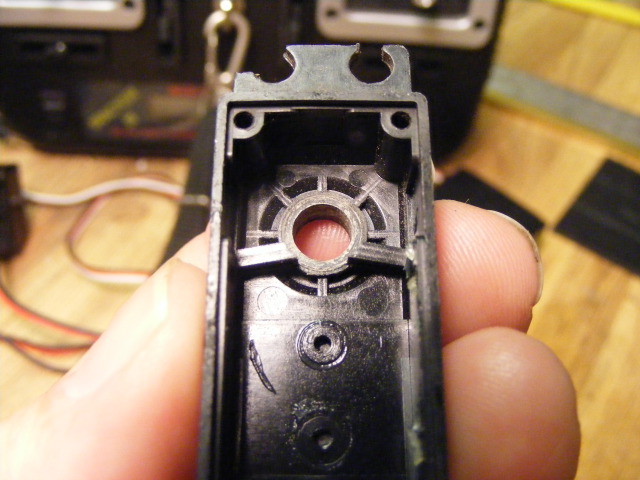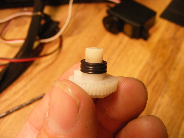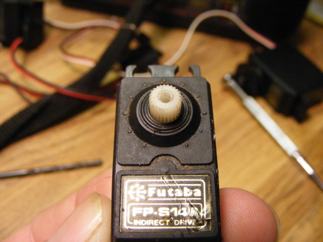 No big deal. I wanted to put a servo up front in various submarines to control bow planes without having to put it in the Subdriver and then try to figure out a way to actuate the planes. It can be done, as many have done it ,but it just seemed to me to be a lot of trouble. So I purchased waterproff servos from Traxxas only to find out that they are not waterproff, by no stretch of the imagination. Fine then! I will just make my own. In my mind I am totally satisfied that if you use "Goop" to seal up all the seams and screw heads and wires ,no water will get in. However the output shaft is a whole different situation. I was told to put o-rings around it but that didnt work either. Thats because the shaft is splined outside of the servo case and no o-ring that I know of will seal a splined shaft. So , time to open up the servo and see whats under the splined area. As I suspected on the Futaba s-148 and newer s-3003 there is no bearing and you find a nice smooth shaft that we can work with.