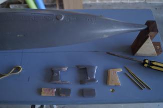 I have started making the vortex dissipators on the rear upper hull. These are tiny fins that angle out from the hull half way between the rear of the sail and the rudder. They are extremely small and easily prone to landing on the floor and never being seen again. They are so small that moulding them is going to be a real challenge. Still have to work on that one. They will need a metal rod sticking out of them or I can see them easily getting broken off. They are on the top of the hull.