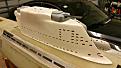 Big is an understatement, and I don't know that the attached pic does it justice. I'm a big guy at 74" tall, and this boat still looks big next to me. The hull is between 3/16" and 1/4" thick throughout and is solid enough to cause serious damage if it hit an object while under full steam, I'd warrant. The CNC inserts are very well done and for the most part are installed nicely flush with the hull.