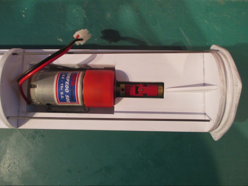 This is the top hull in place , opened up at the breakpoint, the lower arm of the servo rod will go to the rod coming out of the WTC from the forward dive plane servo.