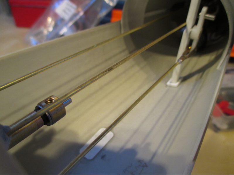 The steel pushrods are all replaced with brass rods and brass clevises and checked again for straight alignment.