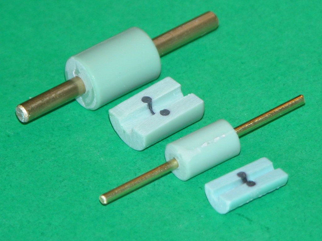 The finished tube exactly cut to length with a 5mm rod inserted and glued in place, with a flat filed for the coupler.
