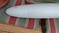 I made the cuts. The forward one came out the best. Two pieces of yellow masking tape, one on each side of the black line gave me a very nice line to cut to. Installed the radial flanges. When assembling it was a little tough to get the two halves to mate so I rounded the tops of the locating pins a bit and beveled the edge of each socket. that helped a lot. Snaps right together now. I still have a bit of a gap on the port rear seam. Maybe .020". Not sure what to do about that. Is shows most at where the gap in the tongue and groove is. Maybe a piece of plastic card inside to hide the gap? Now fairing the hull.