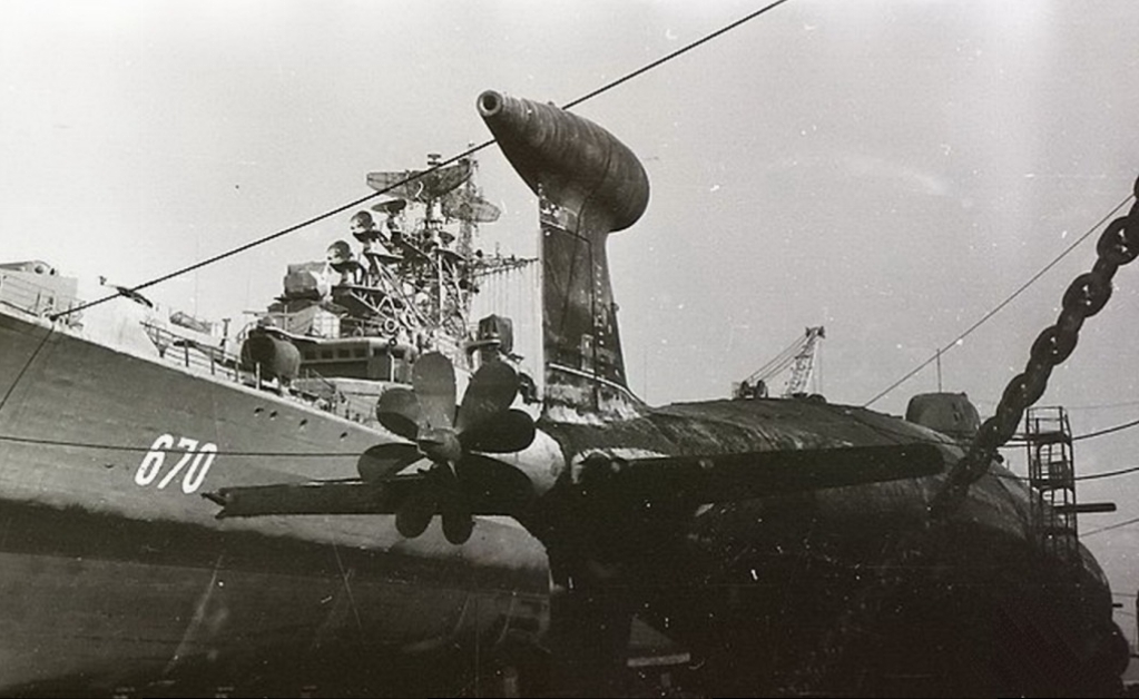And a regular 5 bladed prop.....hey it's a Russian sub what did you expect……consistency my ass.