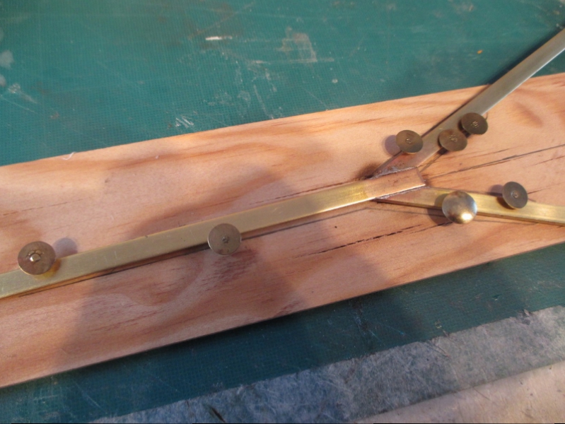 4mm X 1mm brass bar is pinned to the board and soldered in place, then bent by hand in a vice to the shape of the original