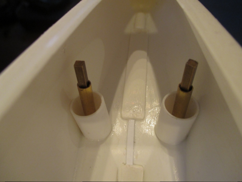 Now the rudder tubes can be epoxied inside the hull.