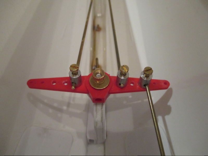 ............... and the twin pushrods go to a rotating fitting, with a single pushrod to the WTC and rudder servo.
