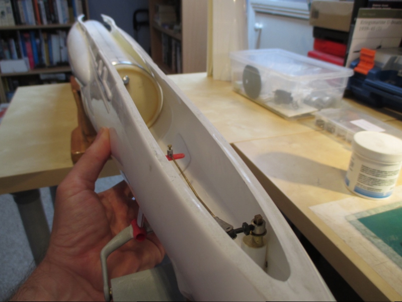 The available holes are used for an air valve, the main On/Off switch linkage bellows and the opening for the water inlet into the piston tank. Holes for servo connections and prop shafts will come later.