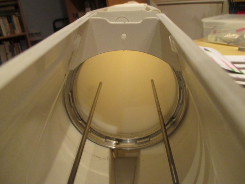 At the bayonet lock the bulkhead is bonded to the top of the ring dead in line with the edges, as there will have to be a very tight fit as both hull sections rotate against each other to open/close.