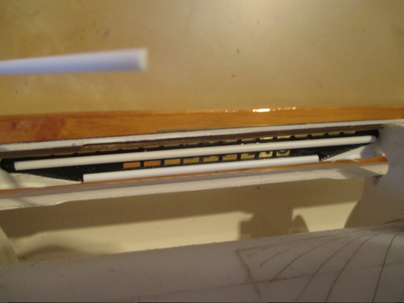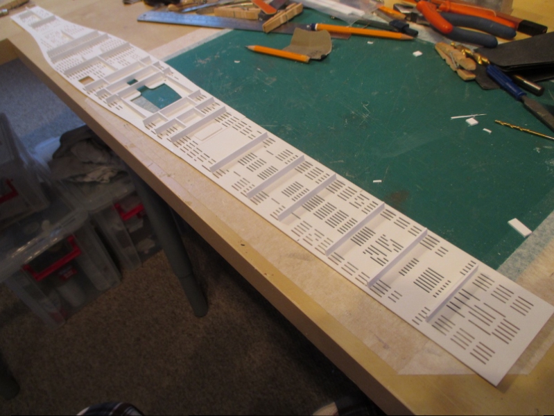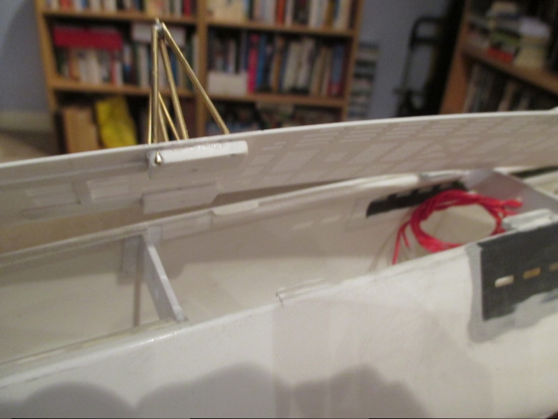 The entire underside of the deck gets cross members from 2mm X 5mm styrene, and under the conning tower is heavily braced.