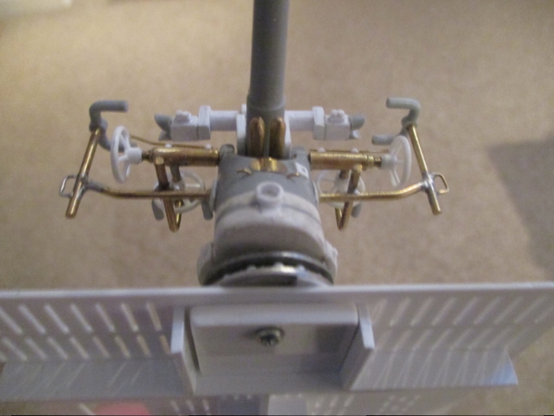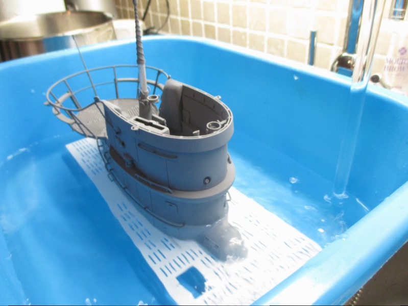 It's taken apart and assembled into the conning tower and put in the test basin, when water rises up the conning tower it simply lifts the periscope slowly, I have it set so that it's fully up when the conning tower is 1/3 submerged, so that one can see the scope rising as the sub dives.