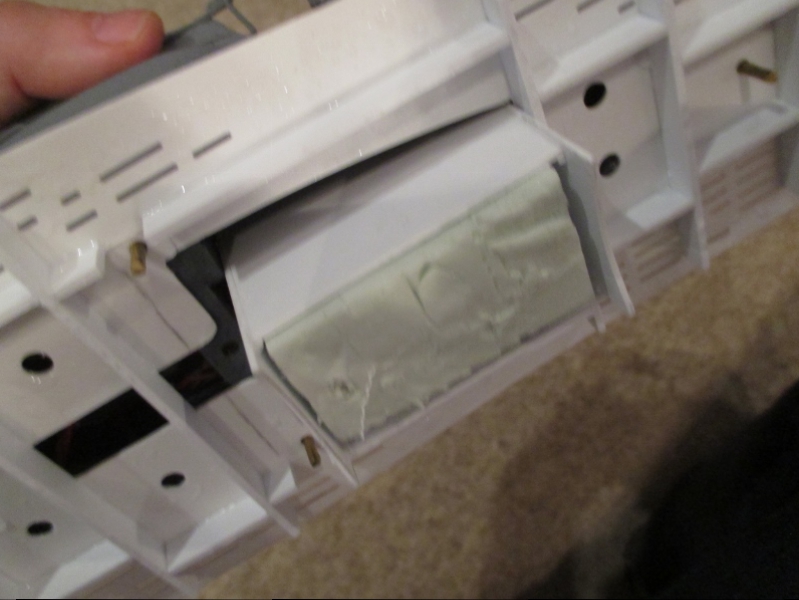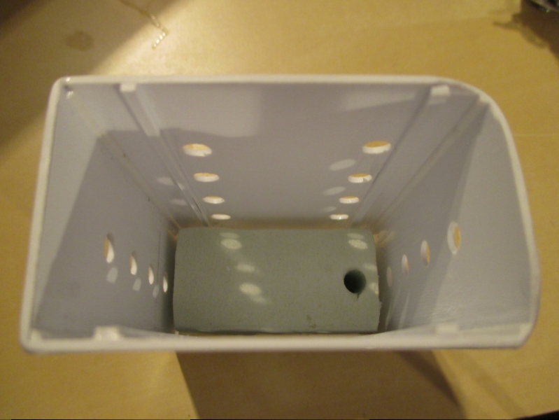 A small open ended square box is made with curved ends to rest on the WTC to fit in this hole.