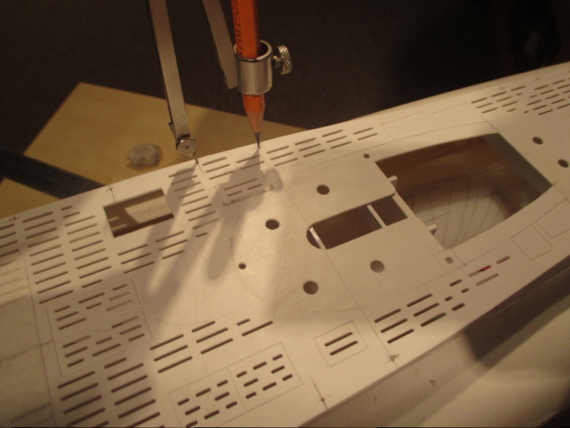 Now for the periscope mechanism, the deck is cut to the shape of the inner space in the conning tower and that shape is transferred to the top of the WTC.