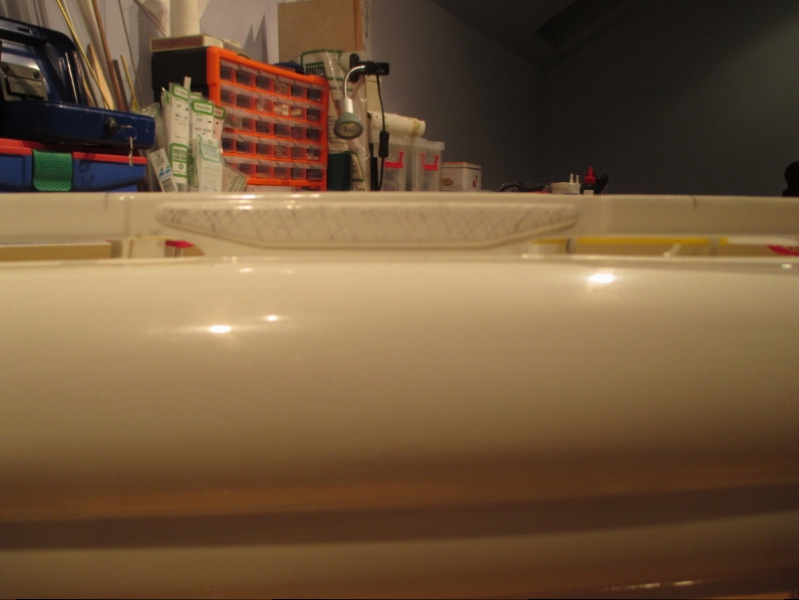 It gets flood/drain holes and the inner sides get small lengths of 2mm x 2mm as styrene runners so the foam block only touches these going up and down not the sides (less friction).....