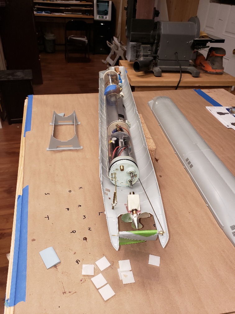 I did not take photos but I installed the rudder and the rods for the bow and stern planes,will take photo when I cut her open tomorrowLast edited by cgbillb; 10-26-2018, 01:32 PM.Comment