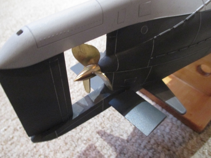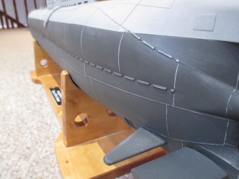 Since this is by nature a static kit she can be build fast, slap some paint on it and you will be amazed how good she stands, one question, that open torpedohatch, won't this give problems since it can act like a scoop underwater?