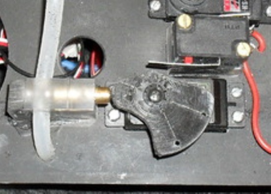 Here you can see the three main components. The nitro line bracket, the roller attached to the servo horn and the "Z" shaped bracket for holding the micro switch at the right height and off the side of the servo. Of course there are any number of combinations for this and you can easily replace the roller with a proper bearing if desired.