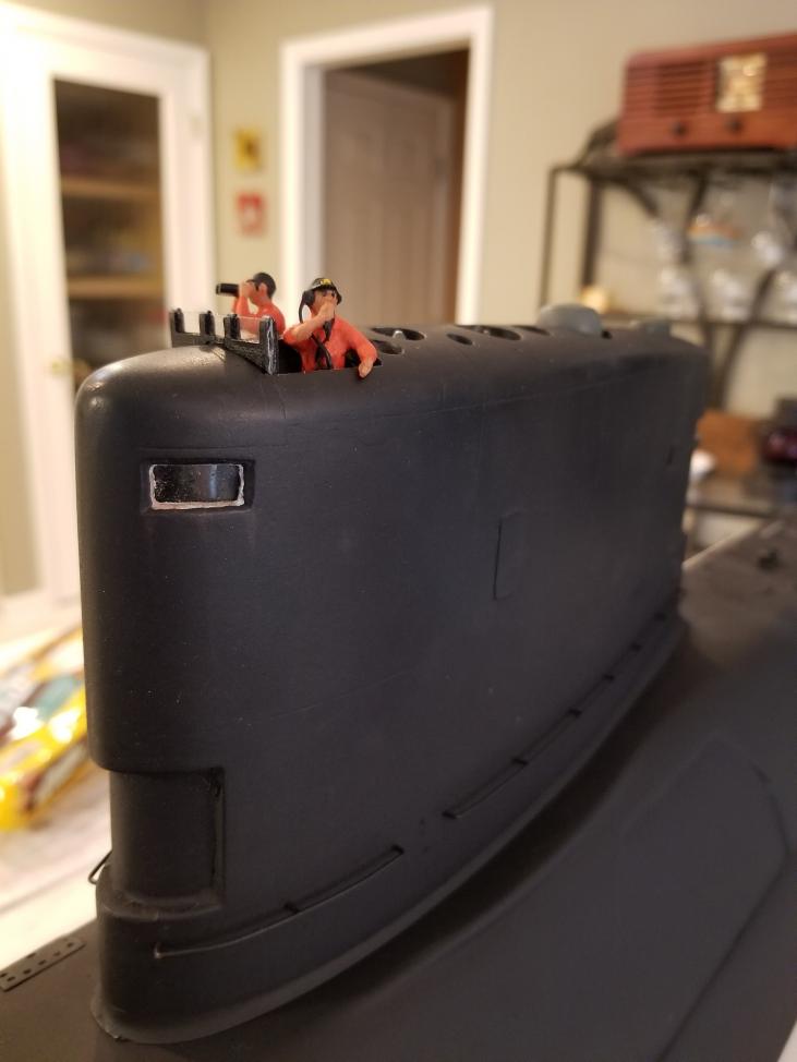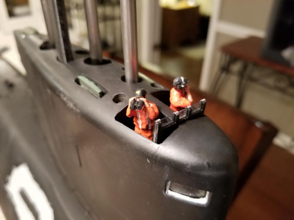 I believe all rc airplanes should have pilots and all subs, when on the surface, should have look outs. These two chaps will be cut up and reposed so their arms stay within the confines of the tower opening.
