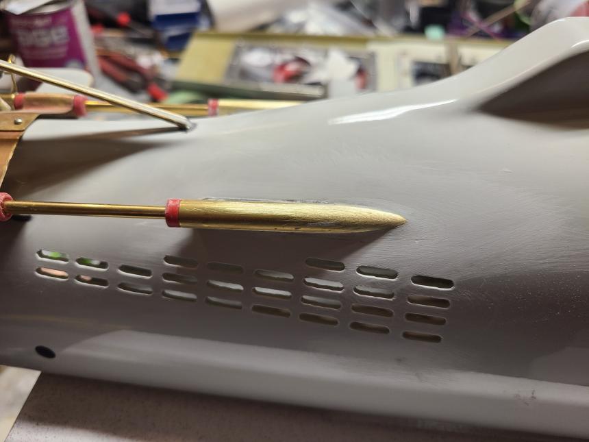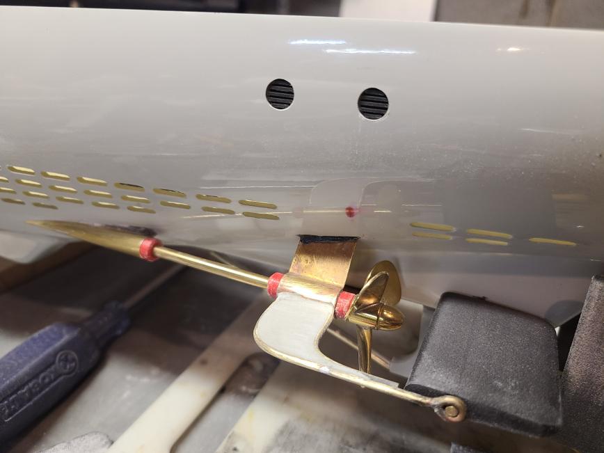 I got the rudders installed, stern planes, bow planes, drive shafts and support rods. I still need to add fillets and blend it all in. I also have the main center Plexiglass hatch made and working on the backing frames for the smaller hatch openings. It's progressing rapidly at this point. I used modeling clay to seal around the tubes to glue them in with Starbond black CA. Worked great!