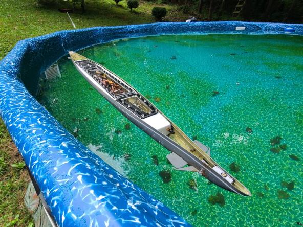 The sub is completely done. I had to do a few minor adjustments to the placement of the weight in the hull to get the trim just right but it is ready to go.Comment
