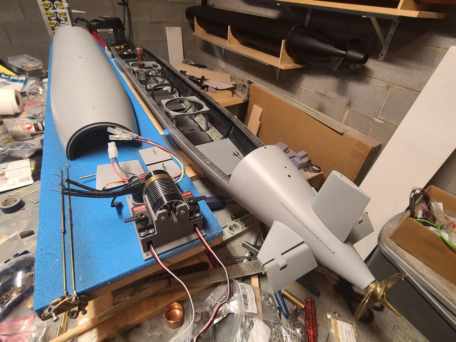 Latest progress on the THRESHER. All the trays are installed, pushrods for stern planes made and all necessary components acquired. I need to wire it up but I want to get it painted before it gets too cold here so that will be my next order of business.