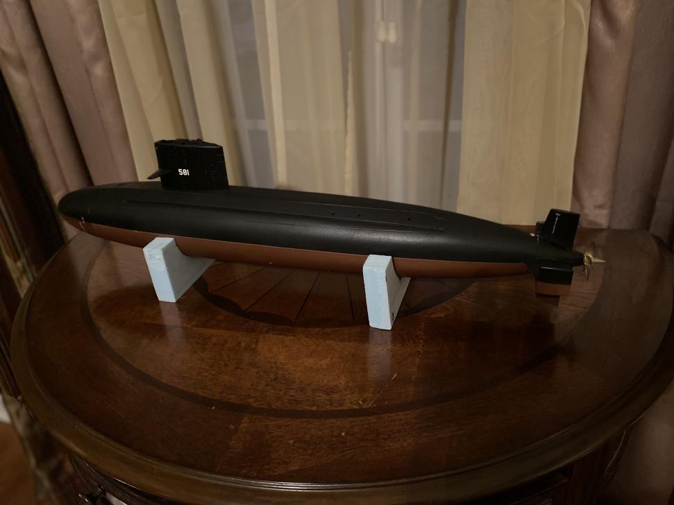 If you take your rainbow trout and re-load your airbrush with black, you can gently go over the lower edge of the scumline to tone it down without having to remove the previous work.
