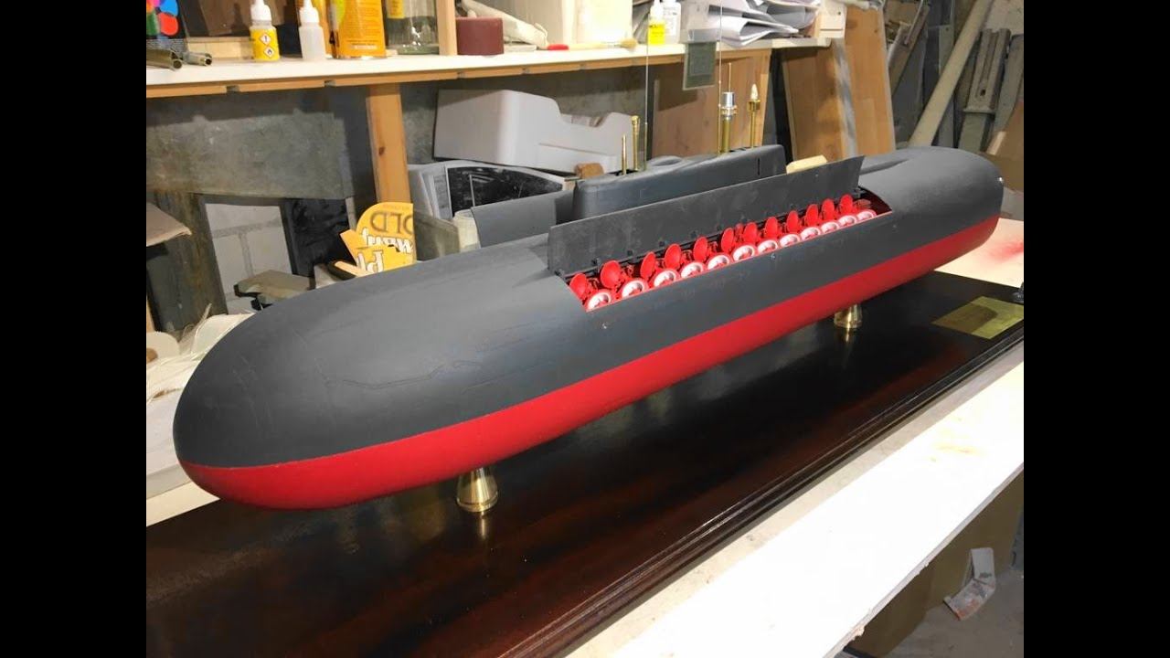Desktop model of the Soviet submarine type 949a "Kursk" in 1/96 scale.