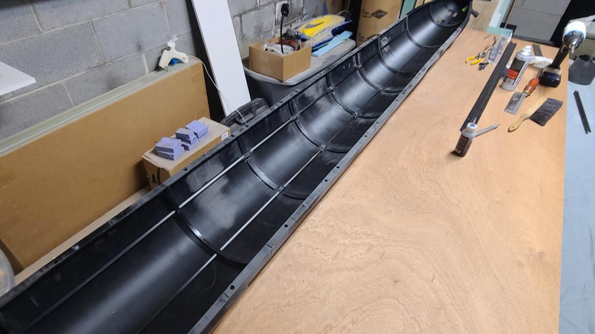 Preparing for Subfest has had me working on my other boats to get them ready as well as getting my trailer ready to haul everything so I have not been able to get much done on this project until today. Made some good progress gluing the top sections together. So far things seem to be lining up well. It is always a process of tweaking, filling and sanding but it will get there.