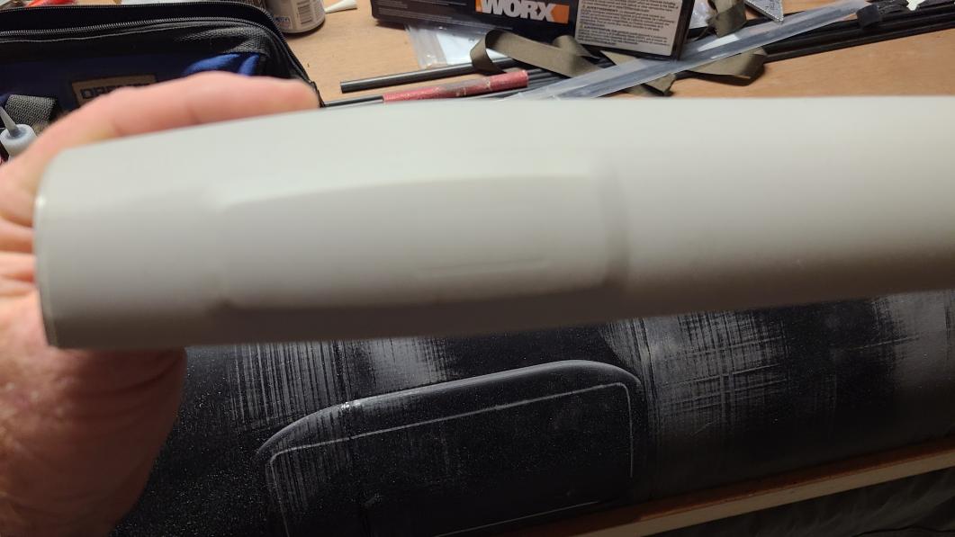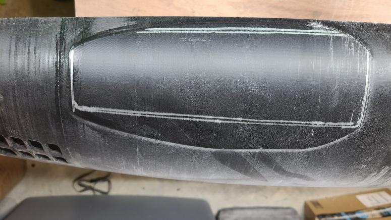 I decided to change the appearance of the WAA's to be closer to scale. The two most aft ones have convex edges as is proper whereas the remaining four have concave edges. A simple reshaping of the edges with a Dremel sanding drum would be in most cases sufficient but the shapes of the WAA's is also off a bit for me. Having the Trumpeter 1/144 model as an example of what they should look like is a big help. After translating some measurements to the scale of my boat I cut some 0.020 thick Styrene sheet to the proper size and shape for the aft Port WAA. Because the aft most arrays have more of a contoured shape I knew they would be more a challenge to adhere the Styrene properly. I cut some blue foam camping mat to the same shape as the Styrene and using a couple small pieces of plywood clamped the foam tight to help shape the Styrene to the intended surface after applying black Starbond CA to glue it down. Worked like a charm. Once set I did a little grinding work around the edge with the Dremel to clean it up. The new array shape was smaller than the old array which left a large area to remove and was just too much to tackle with the Dremel so I got one of those vibrating saws and used it to cut the remaining array loose. Then it was a simple matter of some Rage Evercoat bondo, sanding, Nitro Stan, sanding and now it is proper. After I do the Starboard side the four remaining WAA's will be a snap. There is also some rework I am going to do regarding the torpedo doors that will come later.