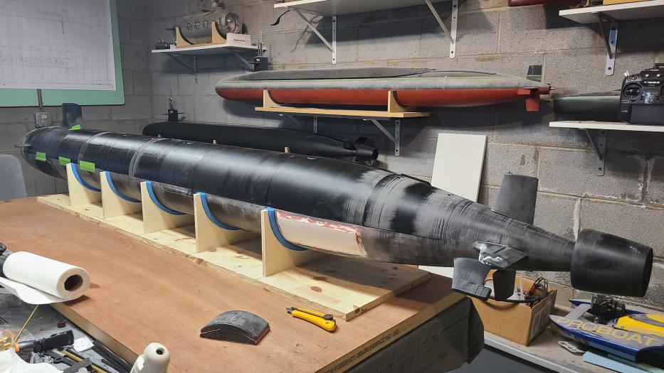 Added control horns to the rudders and stern planes. I have a plan for how I am going to set up the linkages. Here is a short video of how the stern planes work.