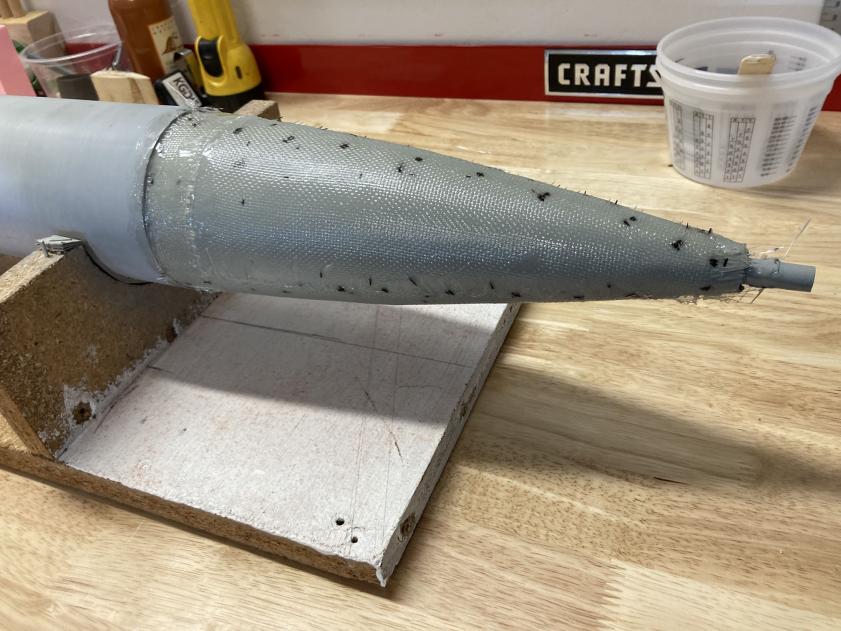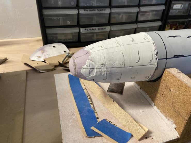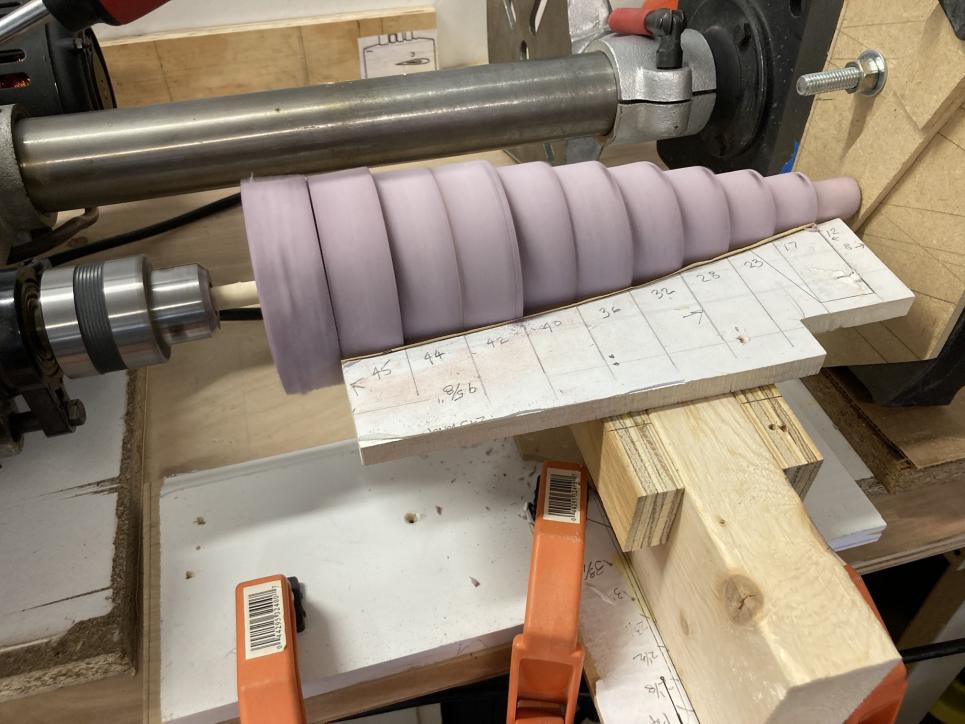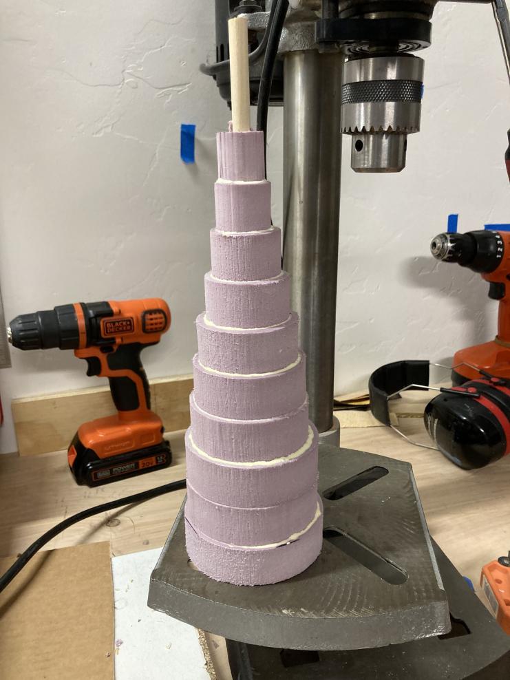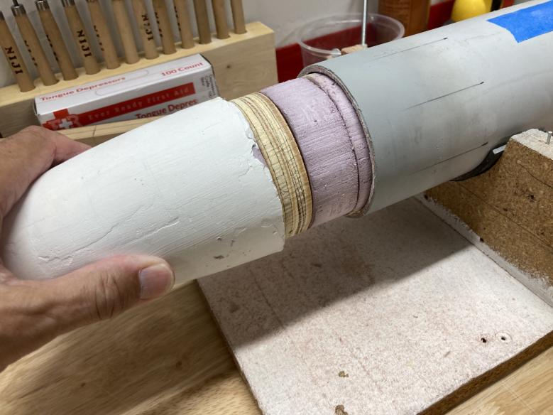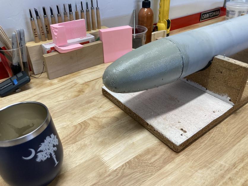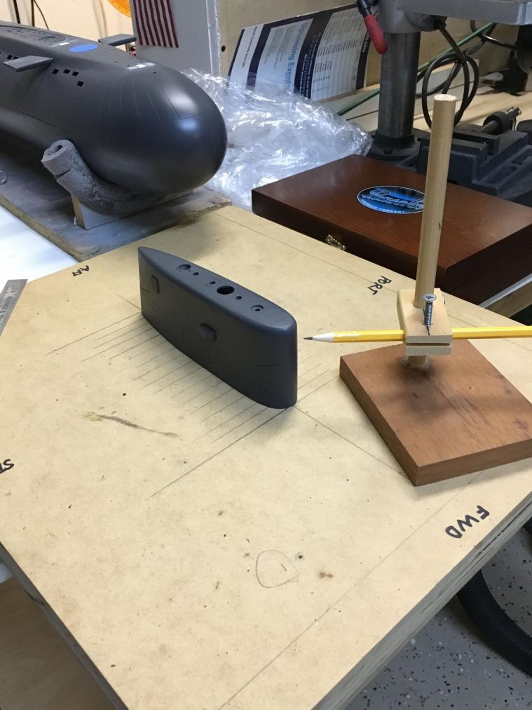 When we moved from California to a retirement community in Arizona I donated most of my models and tools thinking my model building was over. A year and a half later I decided to do one more while I still could. I thought an LA class boat would be somewhat easy to do. Our community is about 25 miles north of Tucson so that's the boat I'll model. I found a piece of 3" PVC conduit up in the construction area and that got me started. Then found an interesting article that gave me an idea for shaping the bow. Tried shaping 1/4" MDF sections on the drill press but wasn't happy with result. I had better results using high density pink foam. Much easier but still had to refine the shape. Once I finally get the bow and stern formed I'll cover them with fiberglass and epoxy resin.