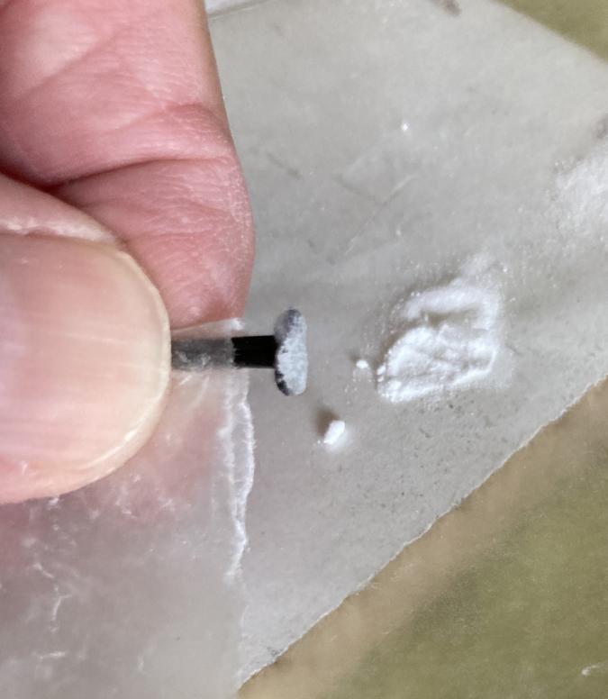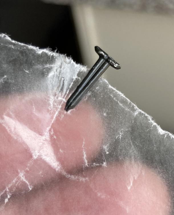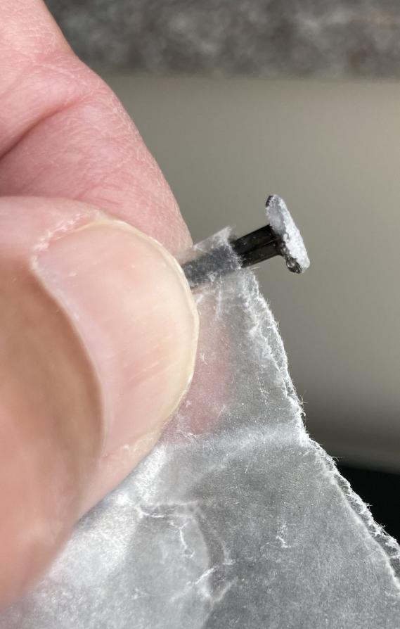I ground the back side of the spikes flat, held 2 of them back to back with waxed paper (what part of bonds instantly to skin do we not understand?), hit them with a shot of CA and dipped them in baking soda.